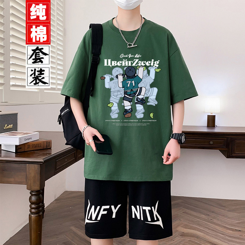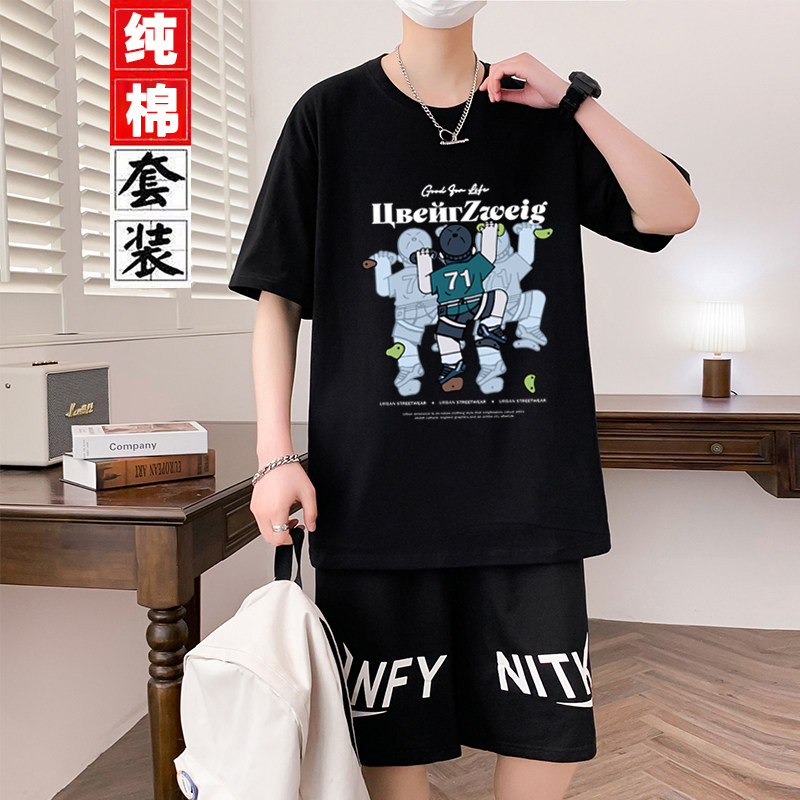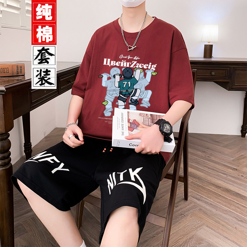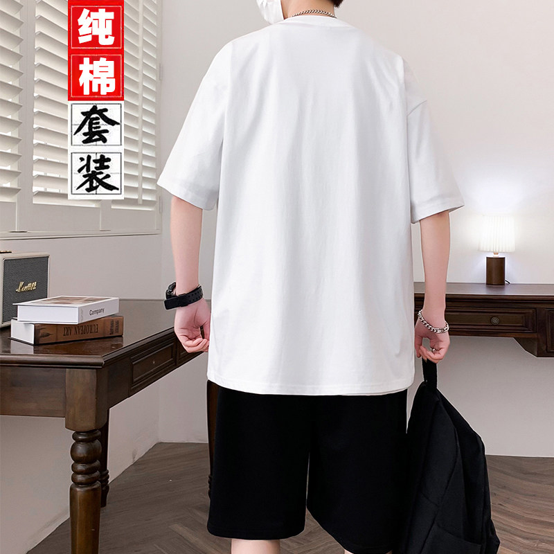 纯棉青少年短袖运动套装夏季新款t恤青少年男装帅气学生潮流套装