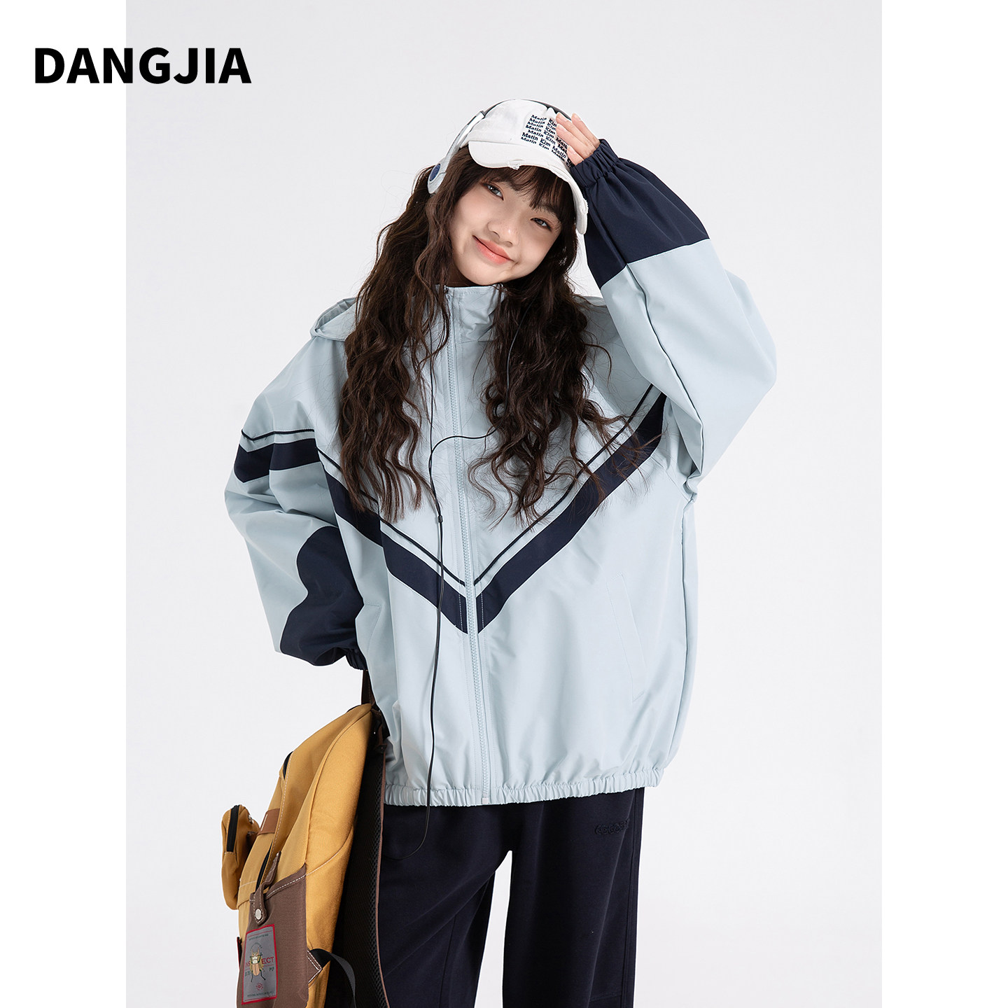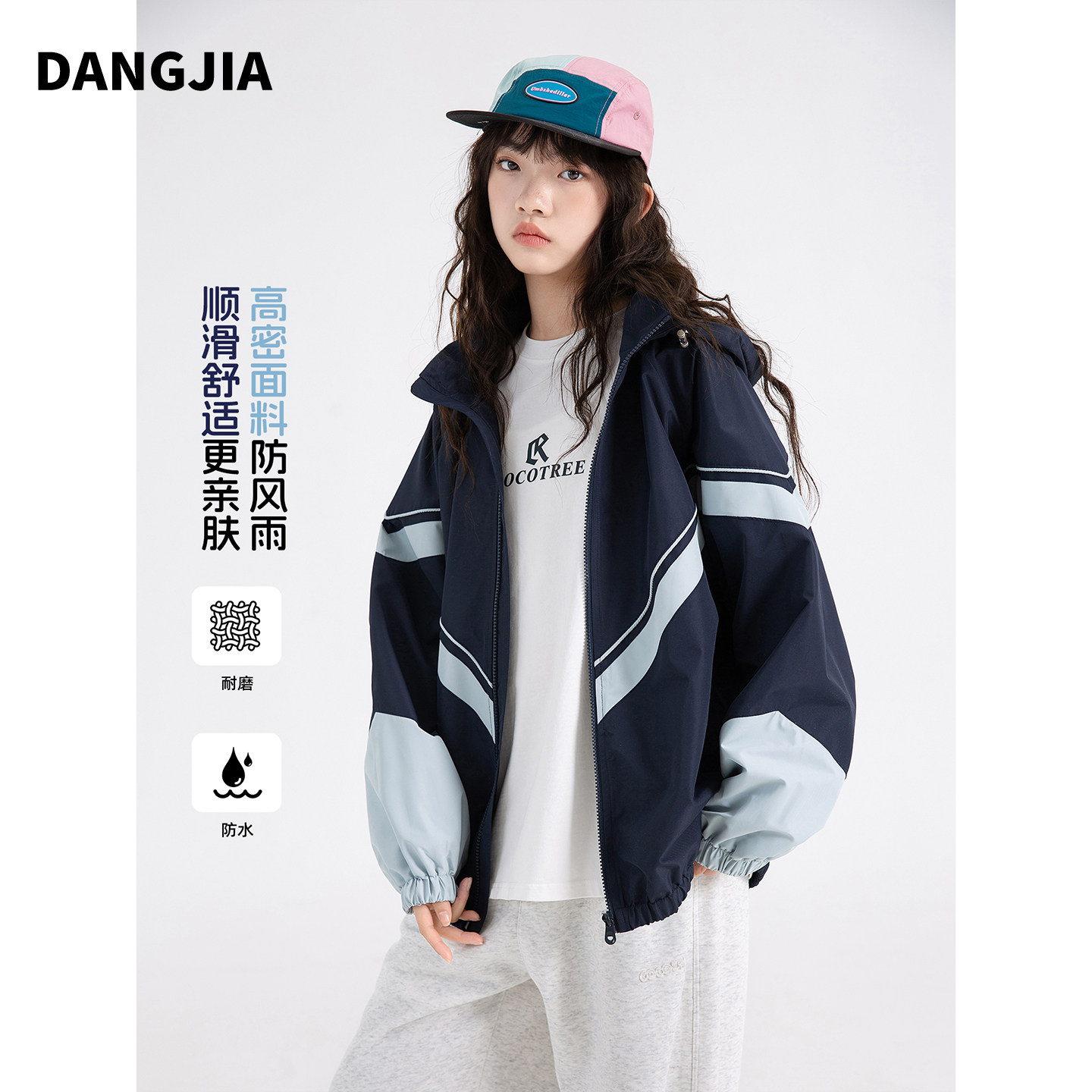 女大童春装外套运动连帽上衣冲锋衣夹克宽松初中生女孩青少年风衣