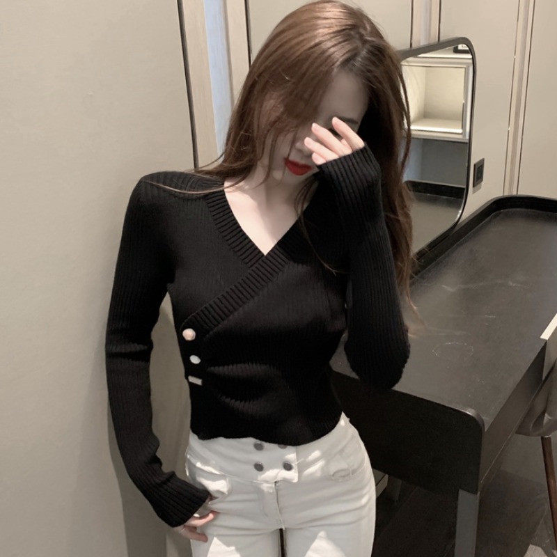 春款女装2026新款V领独特别致上衣设计感小众打底衫内搭秋冬毛衣