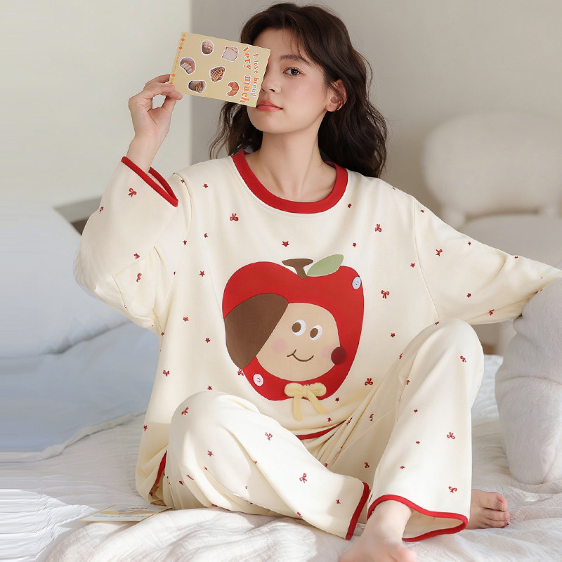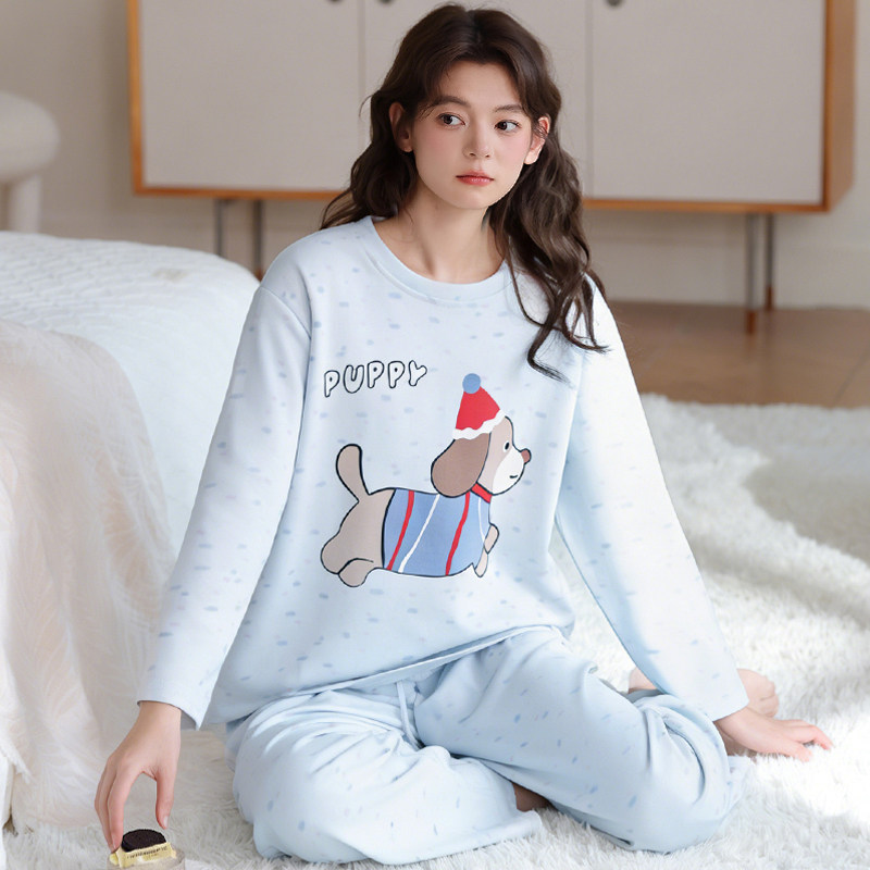 纯棉睡衣女款春秋2026新款保暖内衣套装大码女士可外穿家居服春装