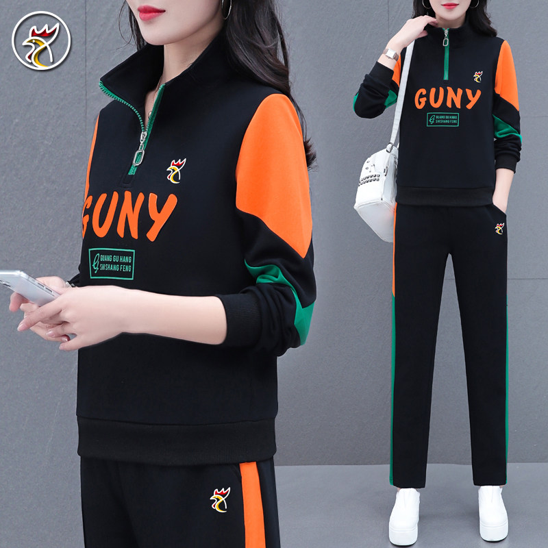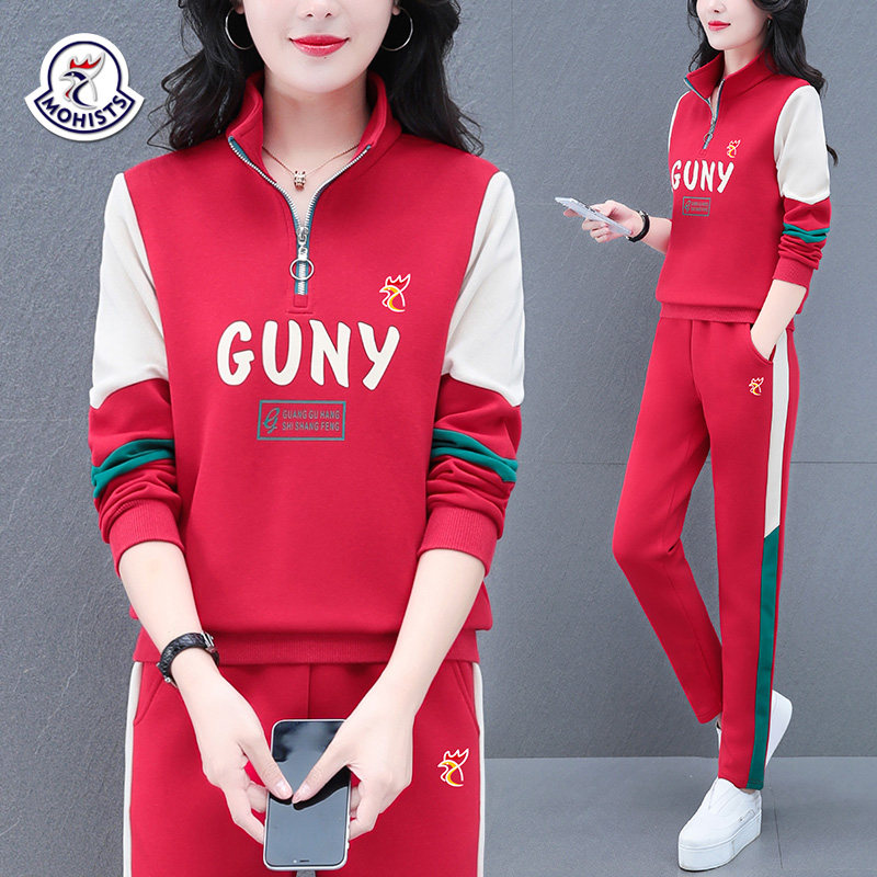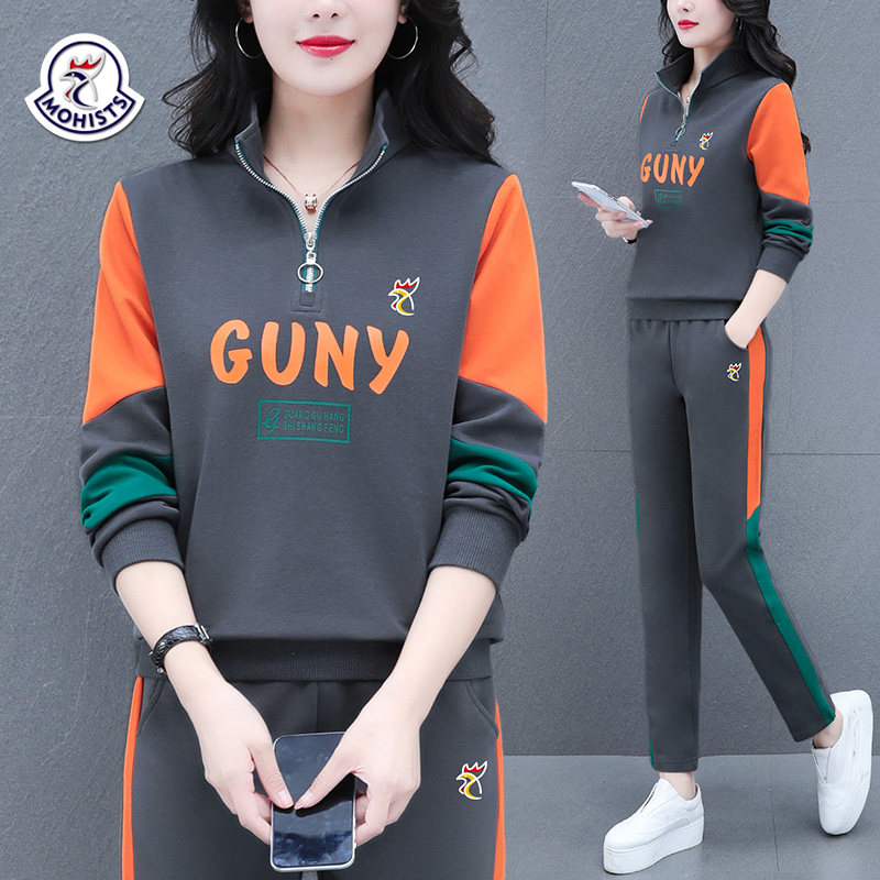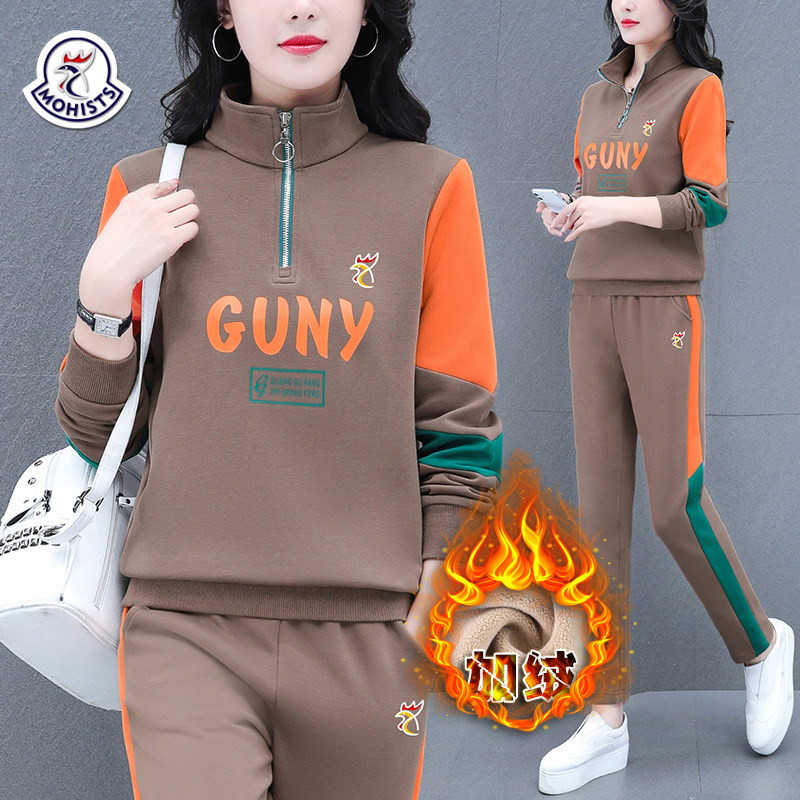 【品牌】妈妈运动服套装女春秋冬加绒大码中年休闲跑步卫衣两件套