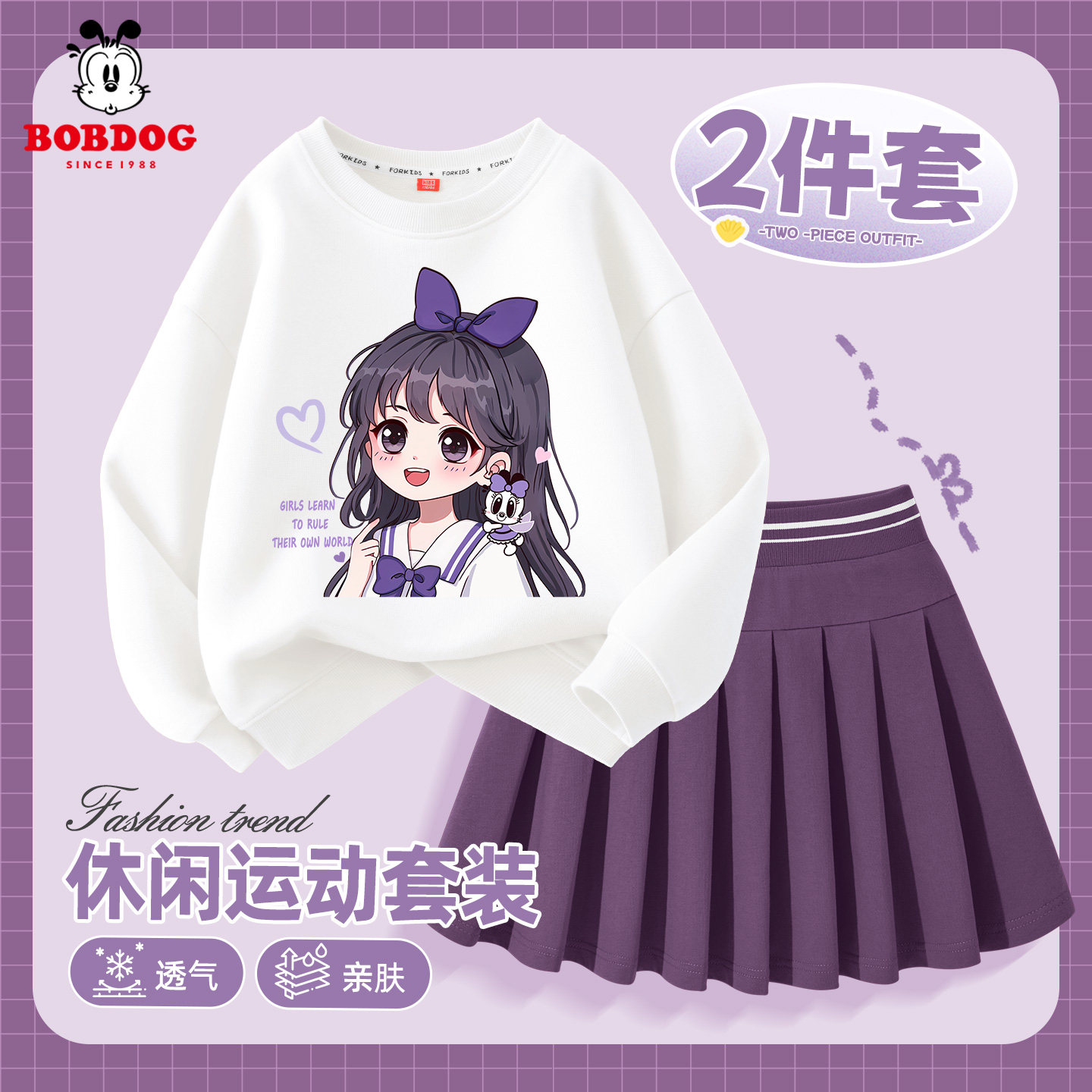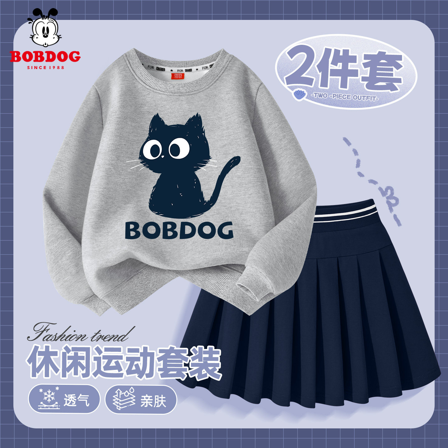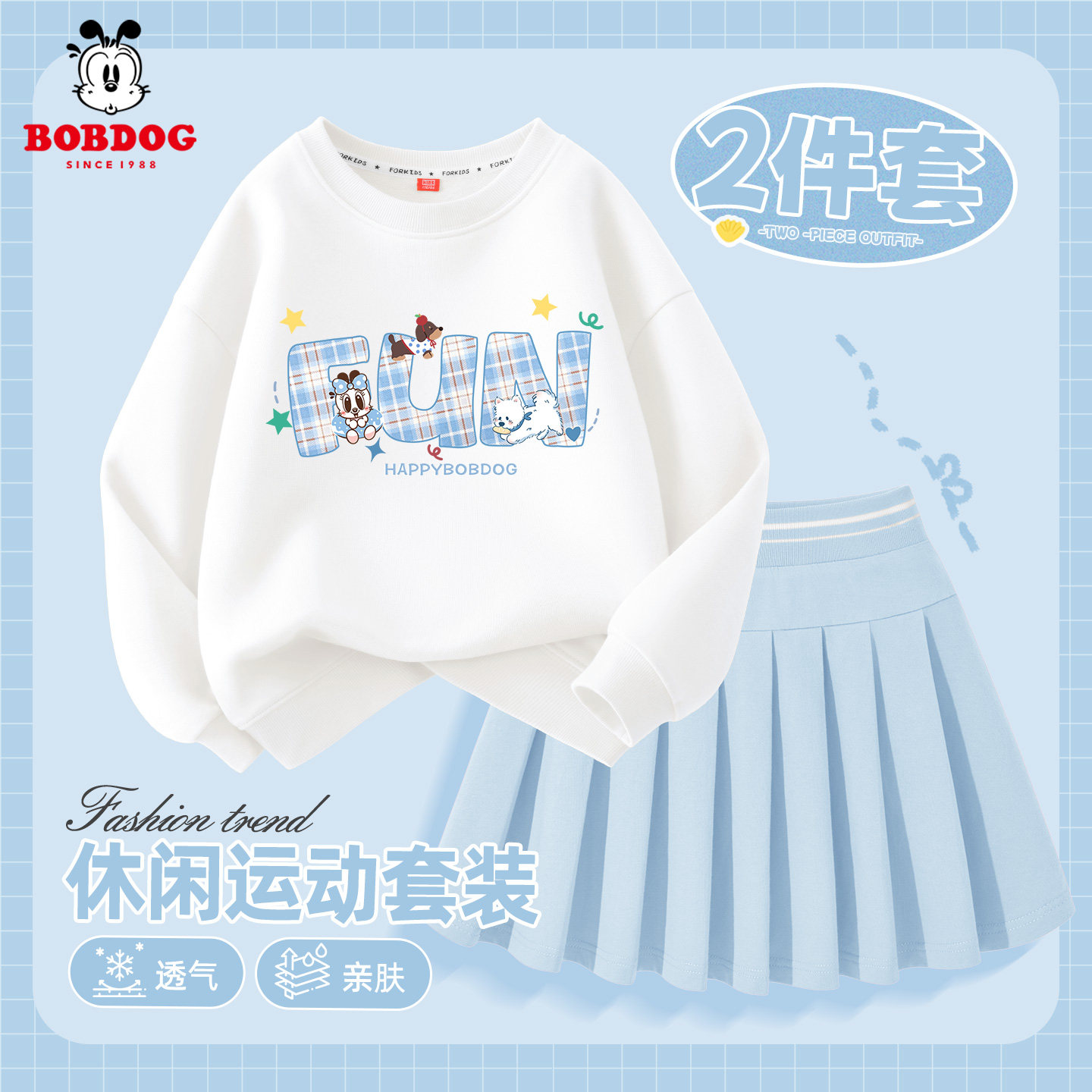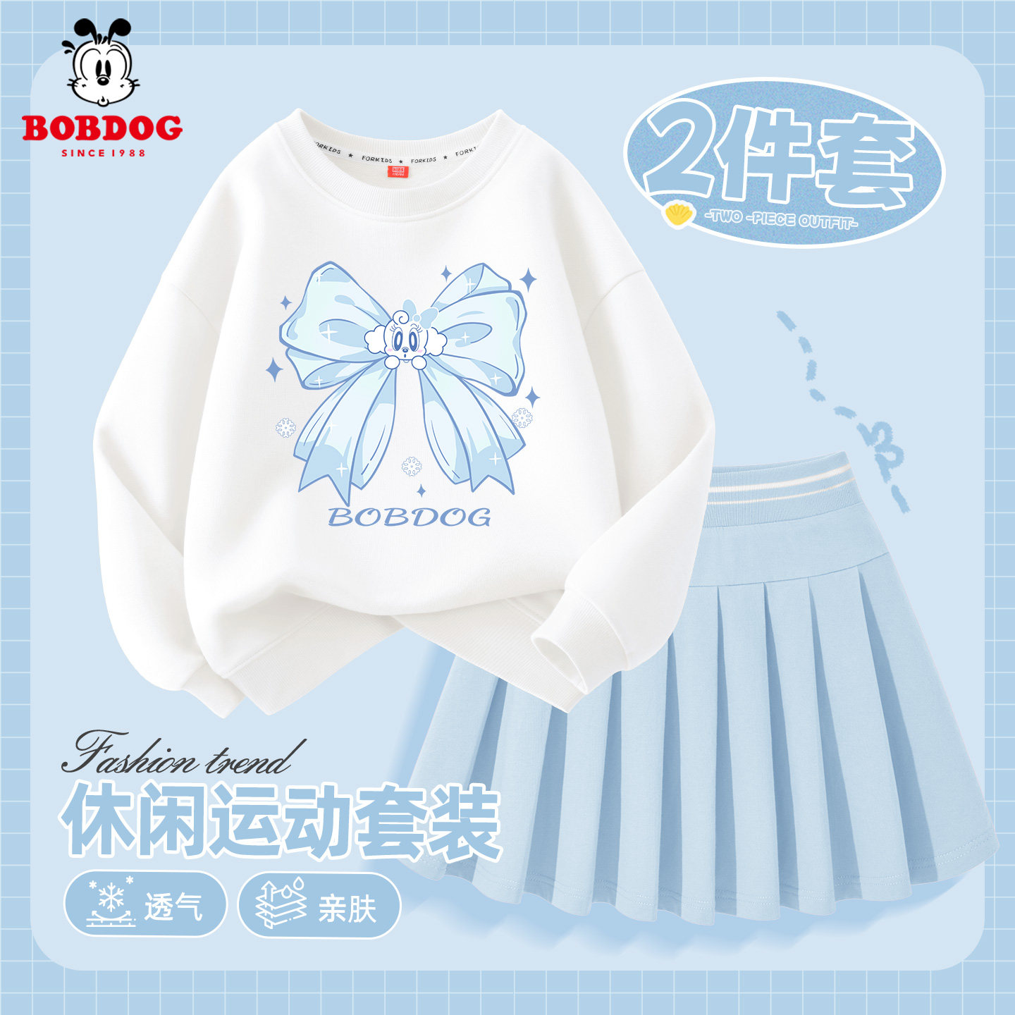 巴布豆童装女童春季套装裙两件套2026新款儿童卫衣运动洋气百褶裙