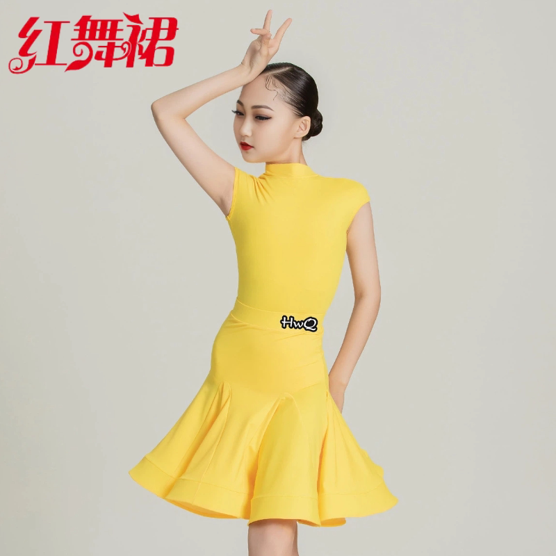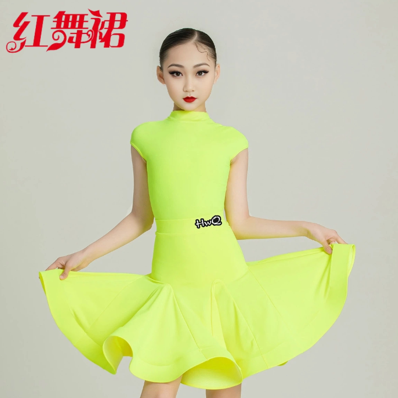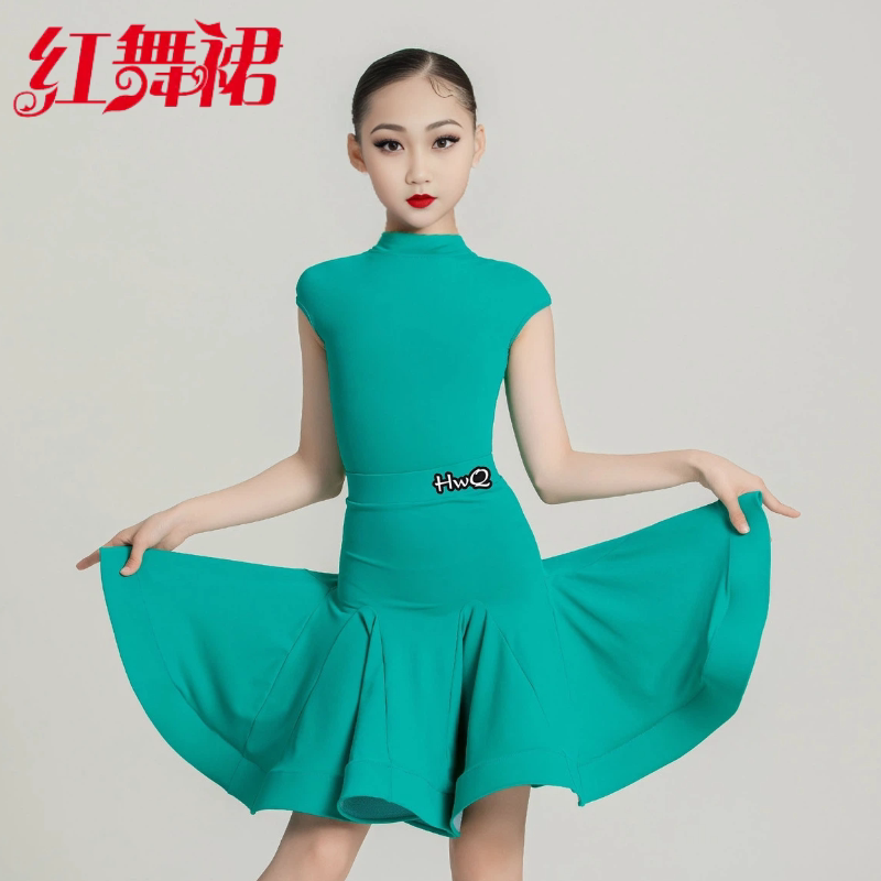 红舞裙新款少儿拉丁舞比赛规定服恰恰伦巴牛仔考级表演大裙摆服装