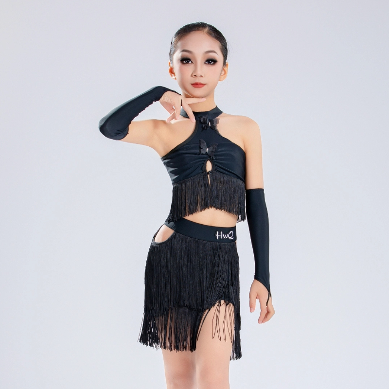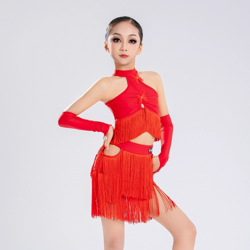 新款拉丁舞演出服表演服恰恰伦巴服儿童无袖比赛考级练功服舞蹈裙