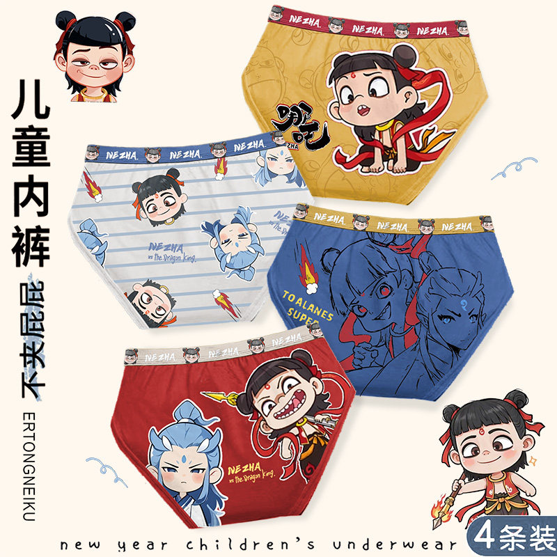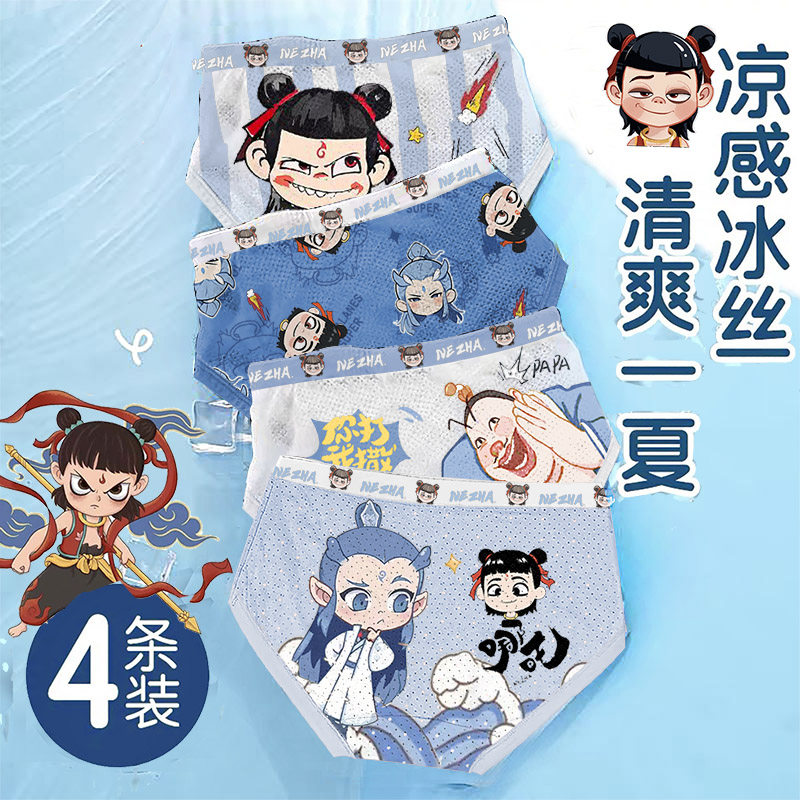 哪吒三角儿童内裤男童凉快网孔莫代尔敖丙小男孩宝大童四平角短裤