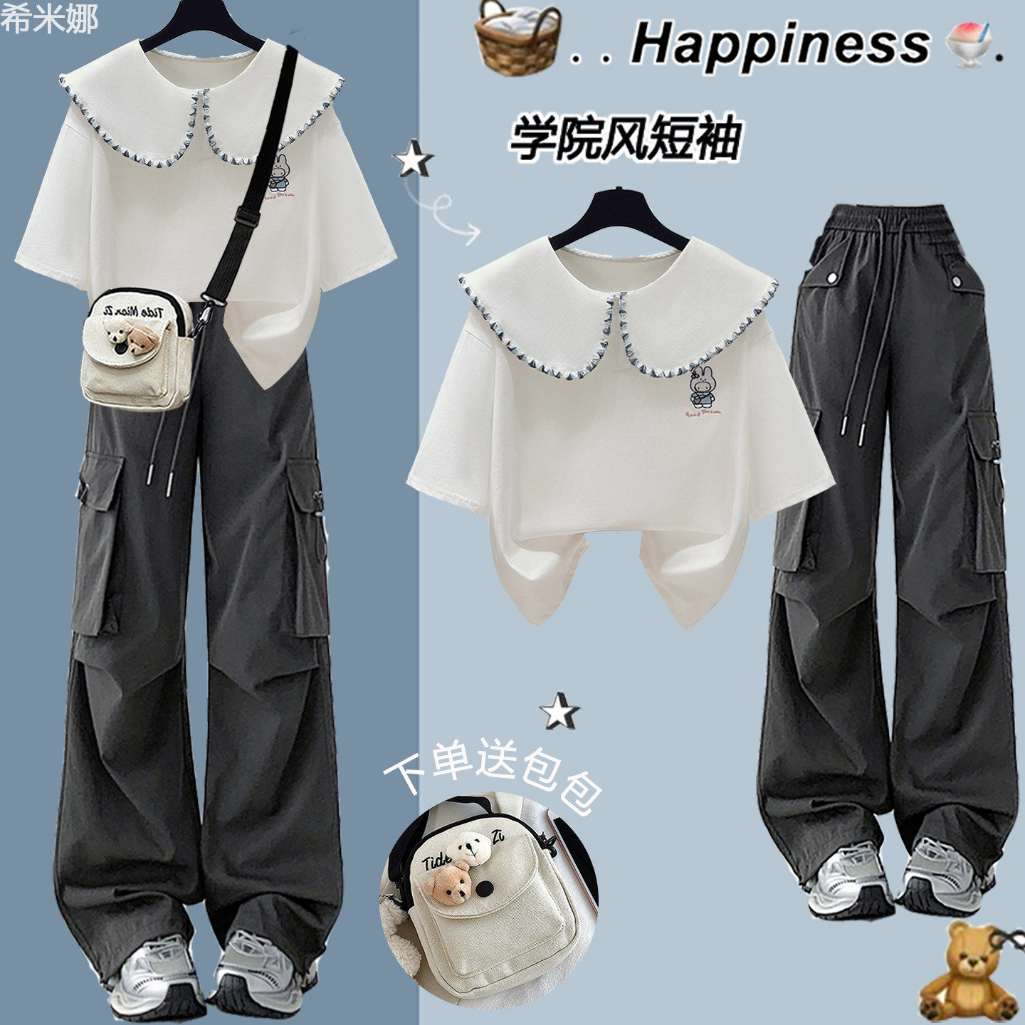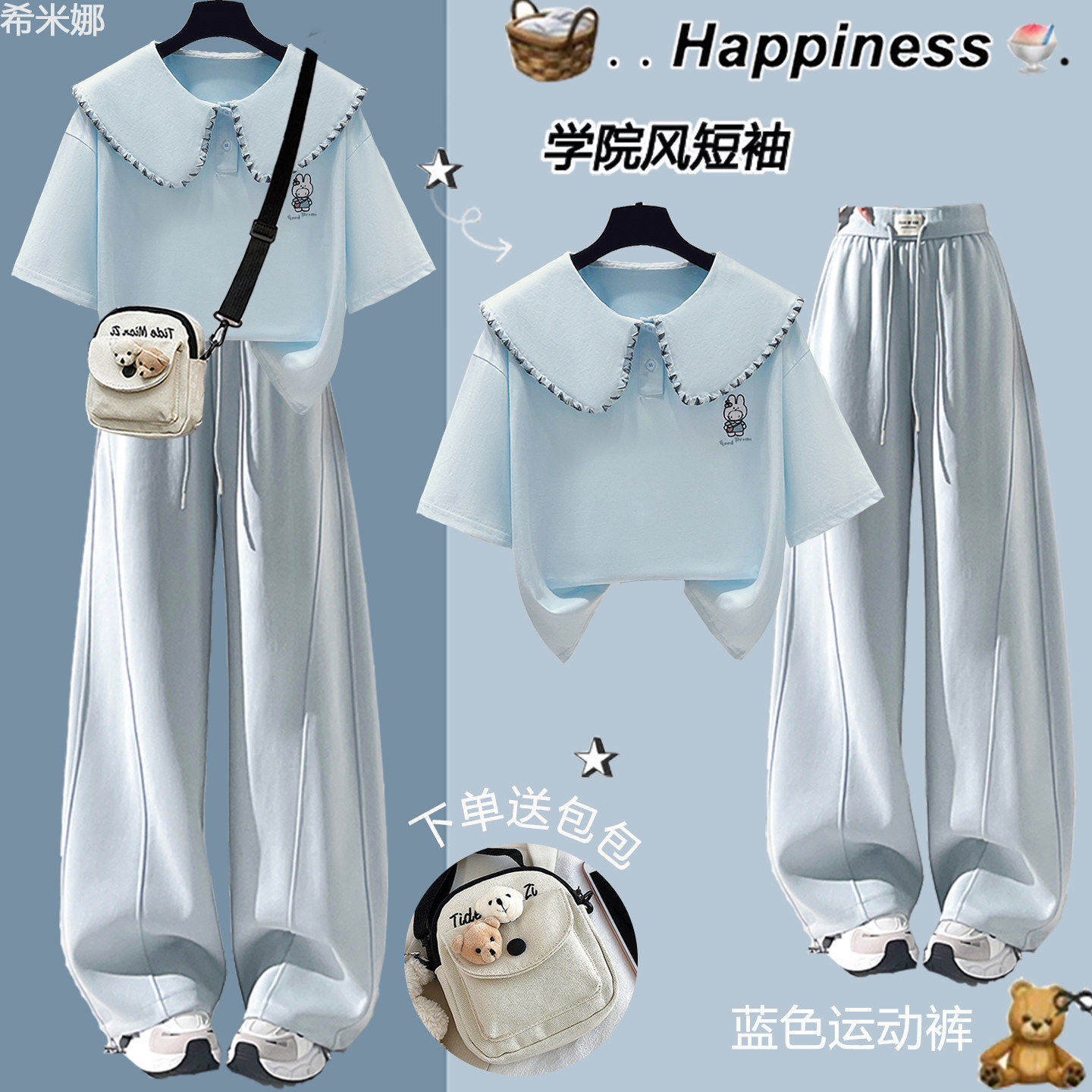 中学生夏季休闲运动套装女2026新款初中生学院风短袖青少年两件套