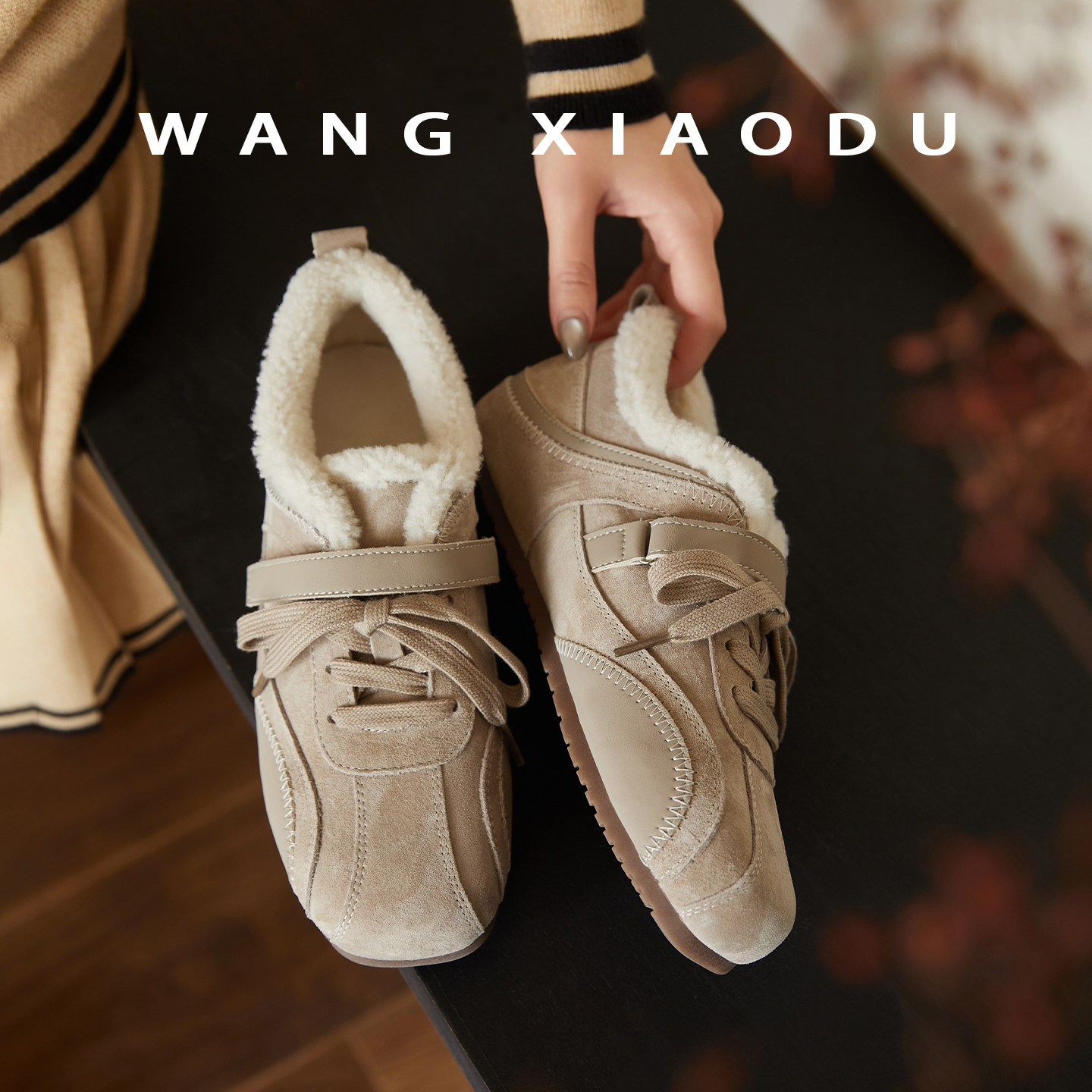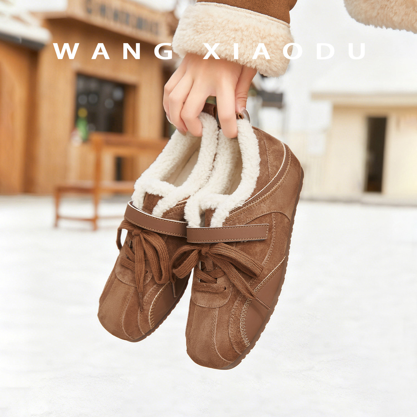 【王小毒】雪落芭蕾●4cm内增高毛毛德训鞋女魔术贴保暖赛车鞋