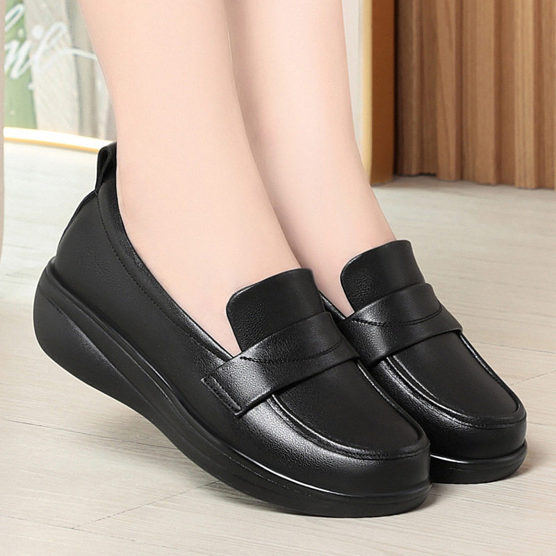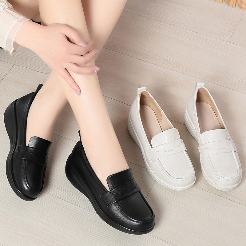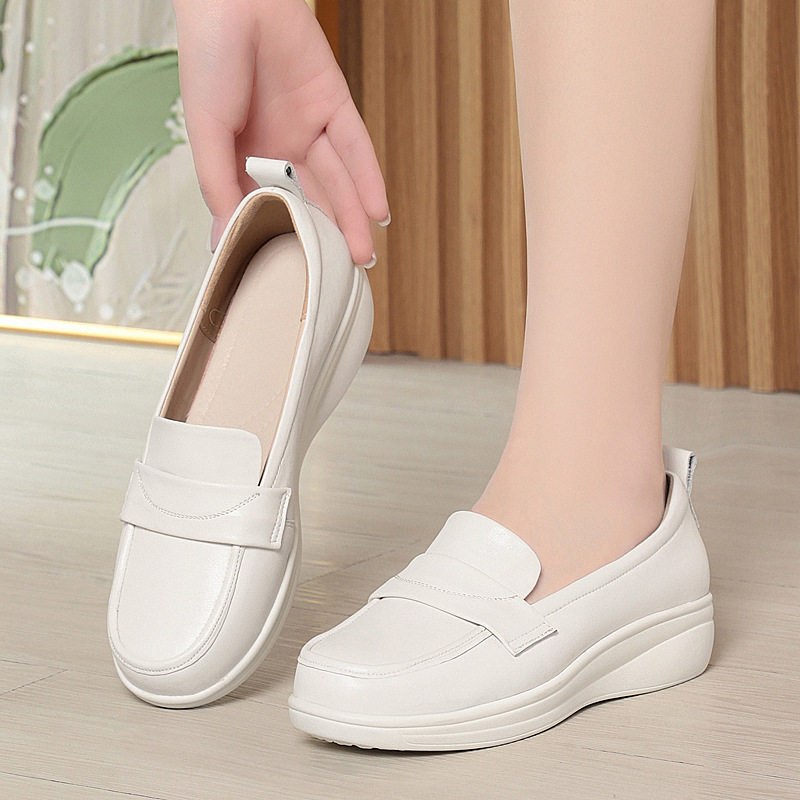 白色护士鞋软底透气不累脚女鞋春秋单鞋软皮坡跟厚底防滑女士皮鞋