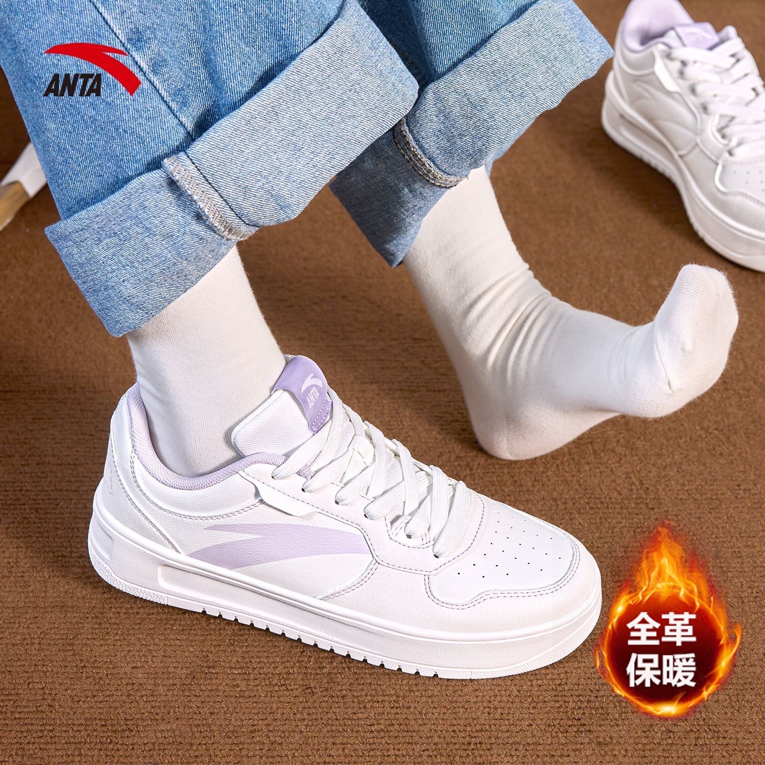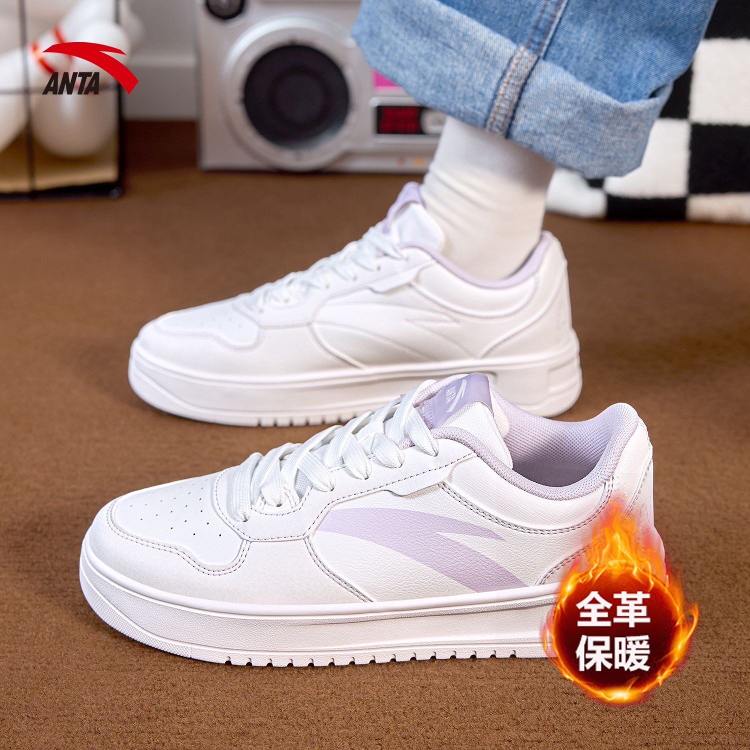 安踏小白鞋轻松丨女鞋板鞋低帮学生夏季新款厚底增高百搭运动鞋子