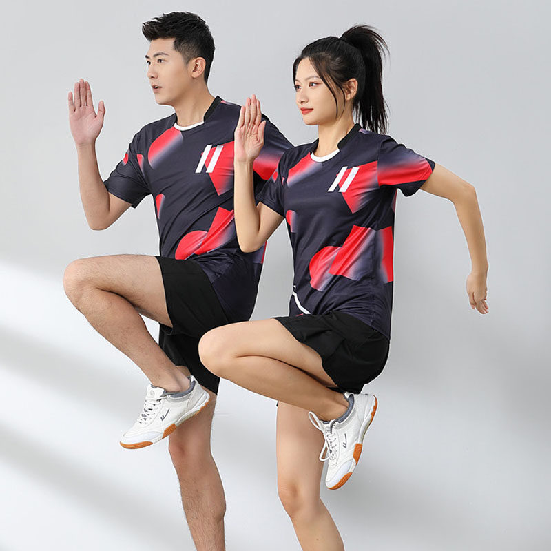 羽毛球服上衣速干排球服男女短袖T恤学生训练乒乓球比赛衣裤印字