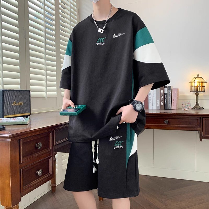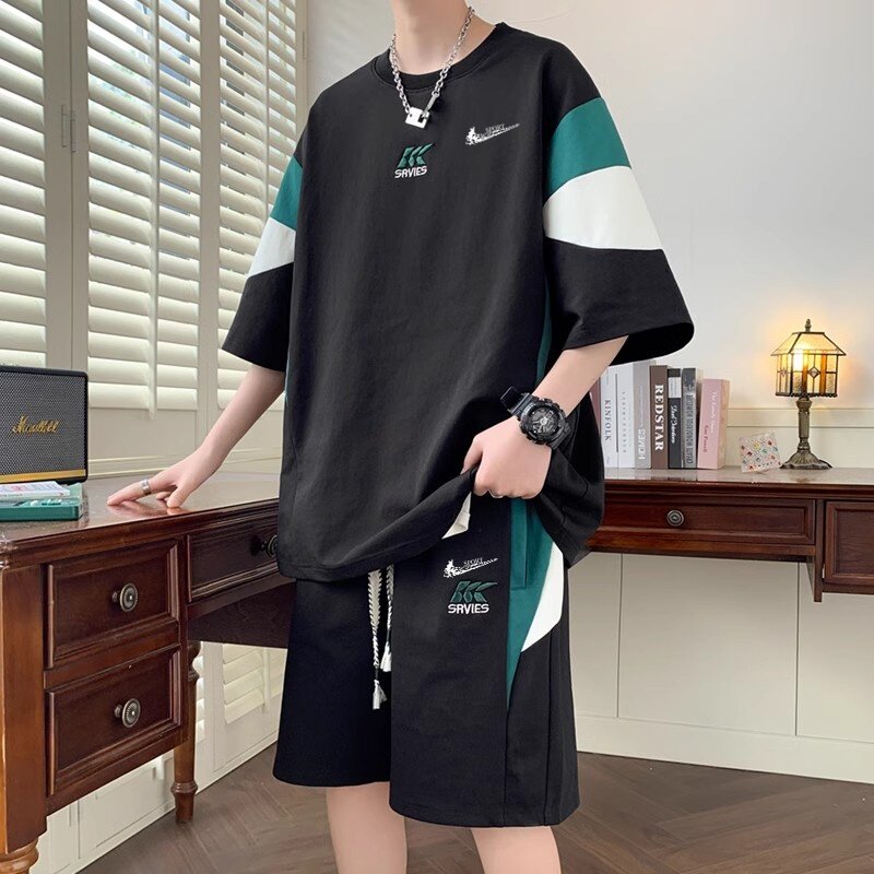 耐克顿短袖短裤休闲套装男夏季透气t恤青少年时尚潮流搭配俩件套