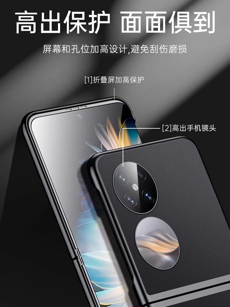 适用华为pocket2手机壳新款素皮折叠屏pocket 2艺术定制版高级全包防摔男女保护套HUAWEI超薄简约宝盒翻盖