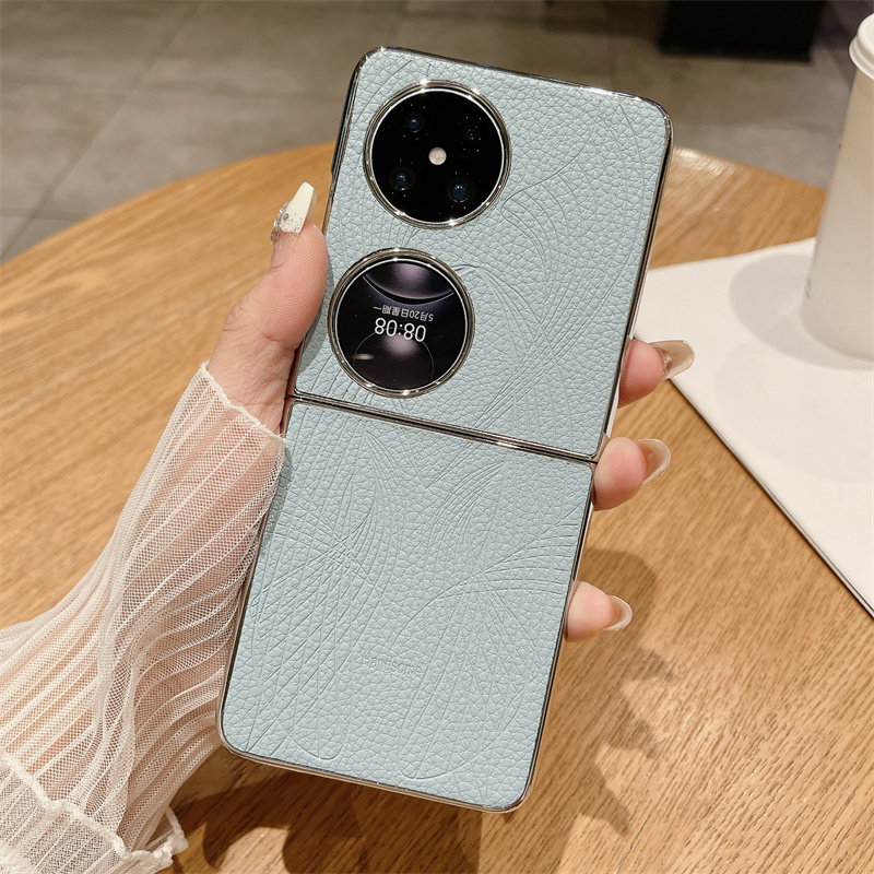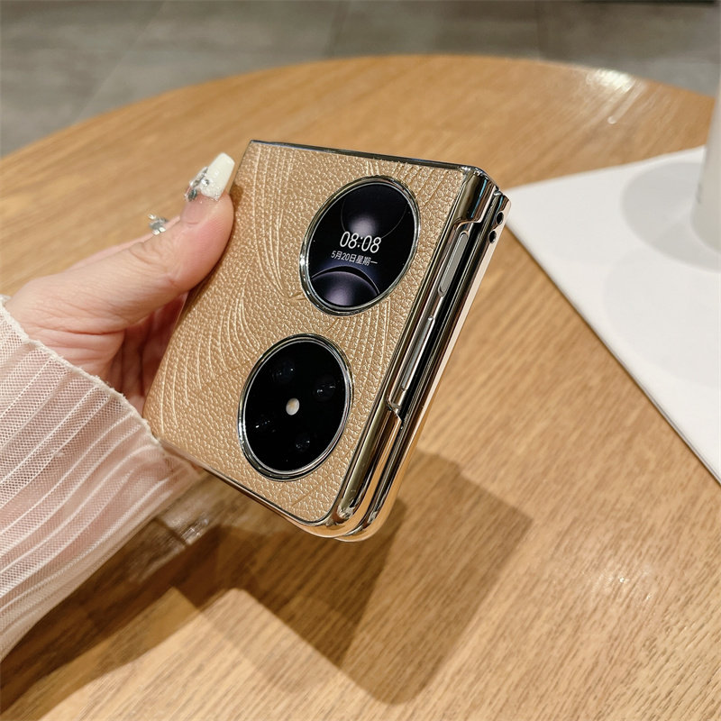 适用华为Pocket 2手机壳新款折叠P50pocket轻奢皮质艺术纹pocket s高级电镀女超薄宝盒全包防摔简约保护套男