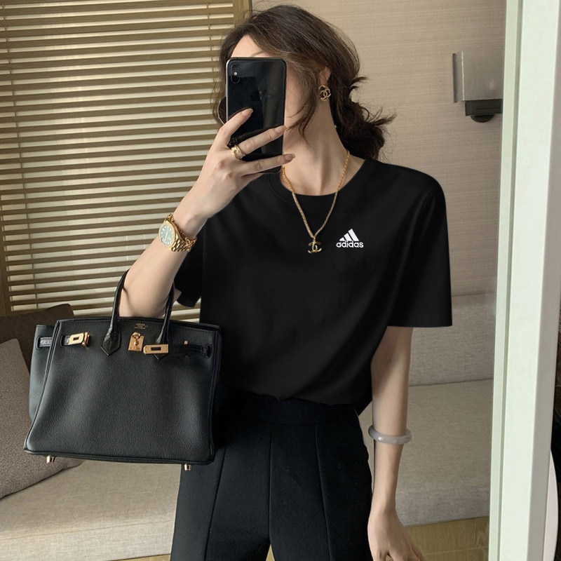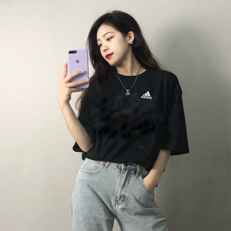 阿迪达斯T恤女2026夏季新款圆领半袖休闲宽松棉上衣透气纯色短袖