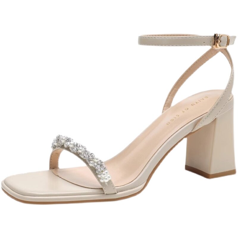 一字带凉鞋2026年新款女夏季网红百搭粗跟高跟鞋不累脚设计感小众
