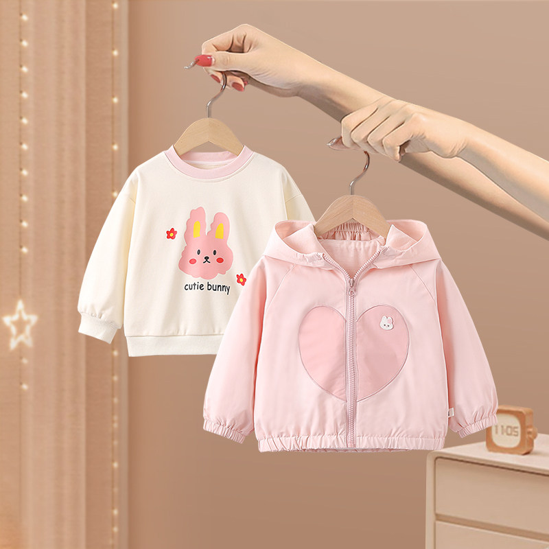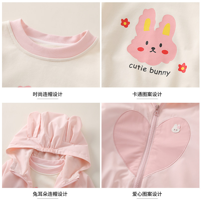 女童套装春秋季2026新款宝宝洋气时髦儿童春装卫衣连帽外套两件套