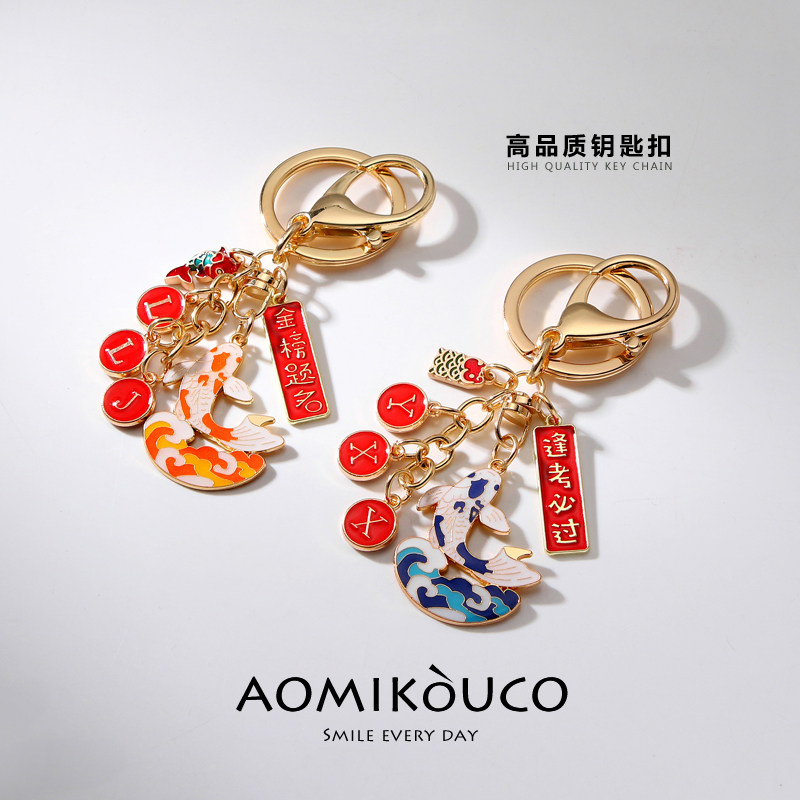 金榜题名锦鲤钥匙扣逢考必过中高考姓名字母定制挂件配饰开学礼物