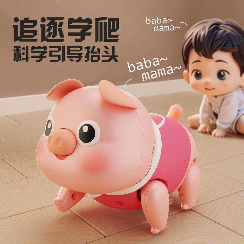 电动牵绳小猪会走路唱歌儿童1一3岁宝宝婴儿爬行引导玩具0到6个月