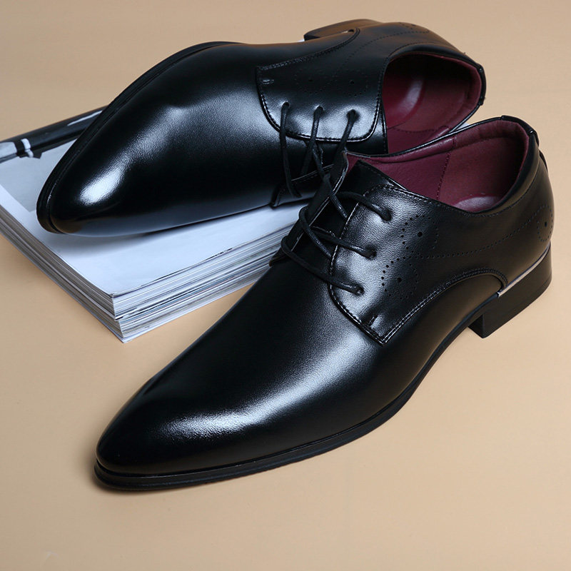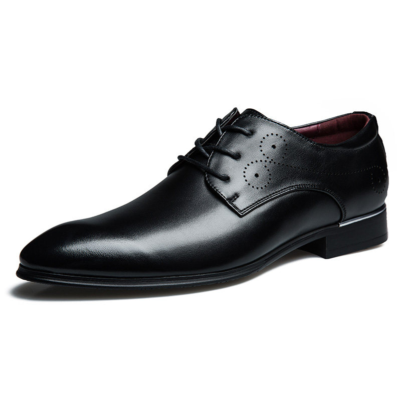 男士商务正装皮鞋男真皮英伦潮流尖头韩版时尚软底内增高透气男鞋