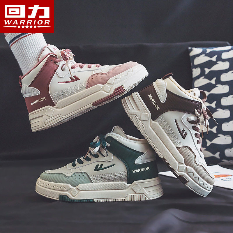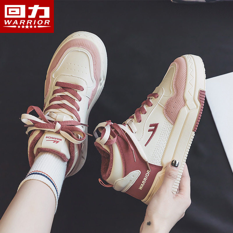 回力女鞋高帮鞋女二棉鞋女秋加绒冬季运动鞋子2024秋冬新款板鞋女