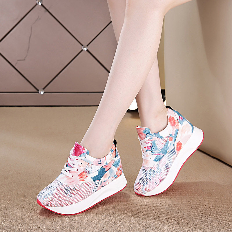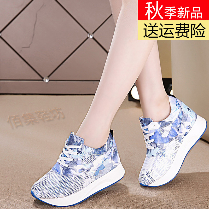 夏天内增高网鞋女透气显瘦网眼休闲女鞋镂空网面旅游鞋坡跟运动鞋