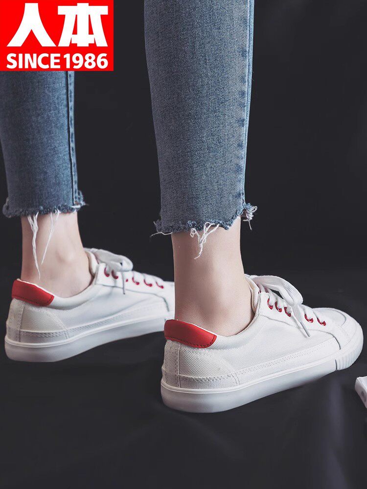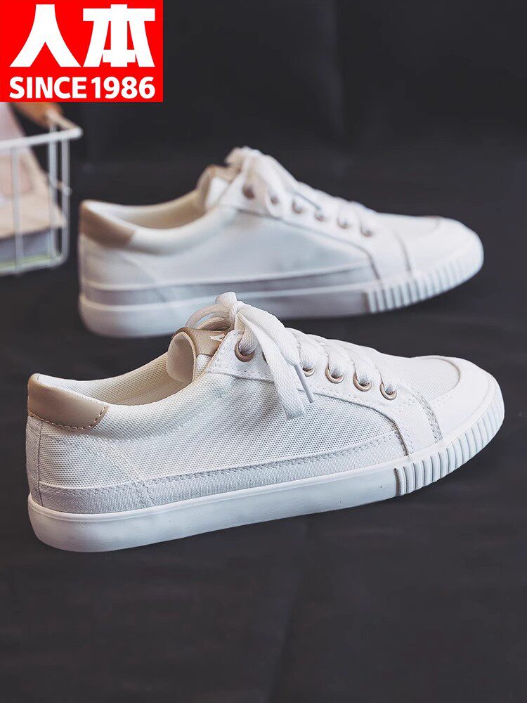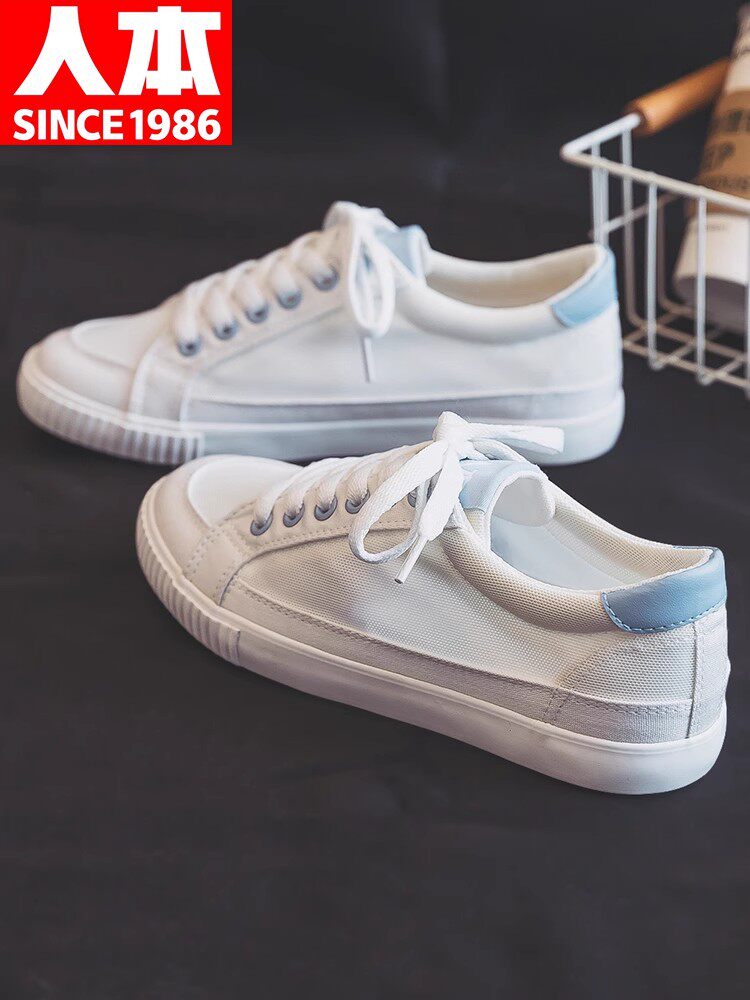 人本帆布鞋女网眼透气小白鞋女夏季薄款网面镂空平底休闲板鞋网鞋