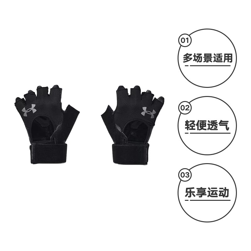 【自营】UNDER ARMOUR 安德玛男黑色手套训练骑行健身1369830-001