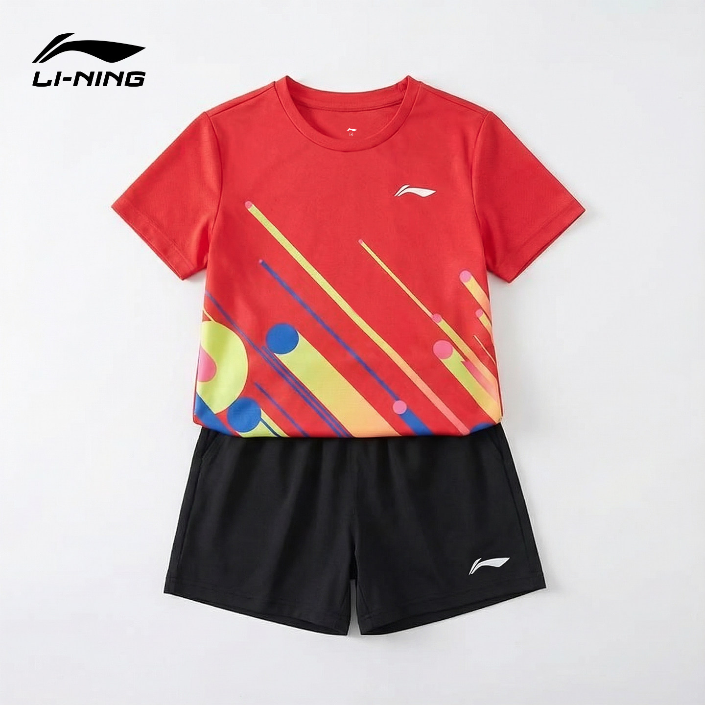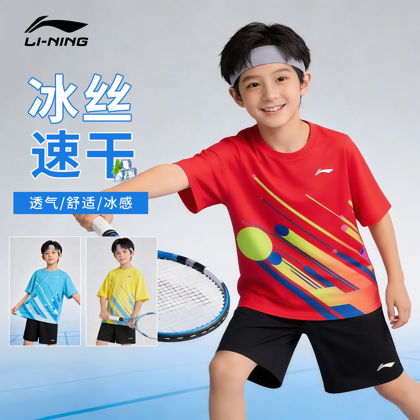 李宁儿童套装速干短袖短裤男童女童羽毛球服乒乓球服健身运动服夏