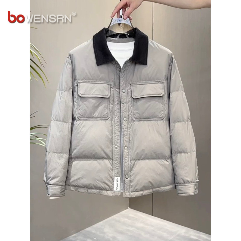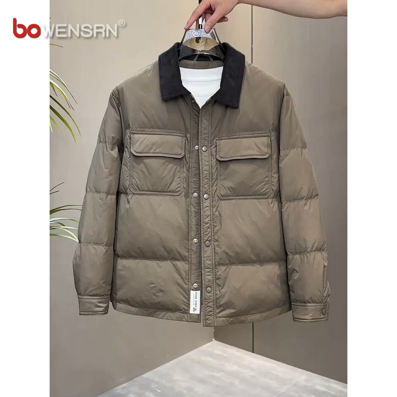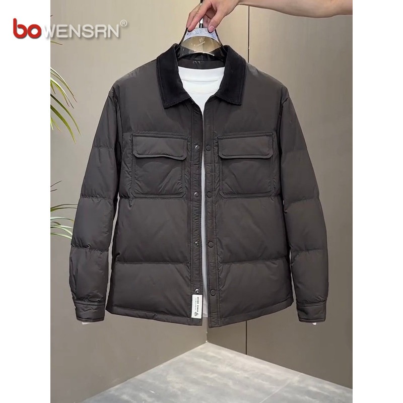 潮牌轻薄羽绒服男士外套2025新款冬季高级感痞帅短款翻领夹克男款