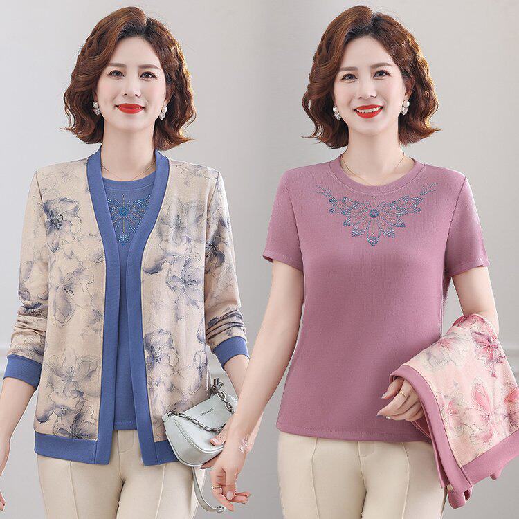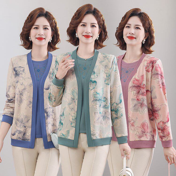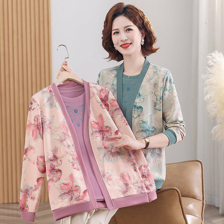 2026新款妈妈春装针织开衫外套中老年女装春秋女款上衣服两件套装
