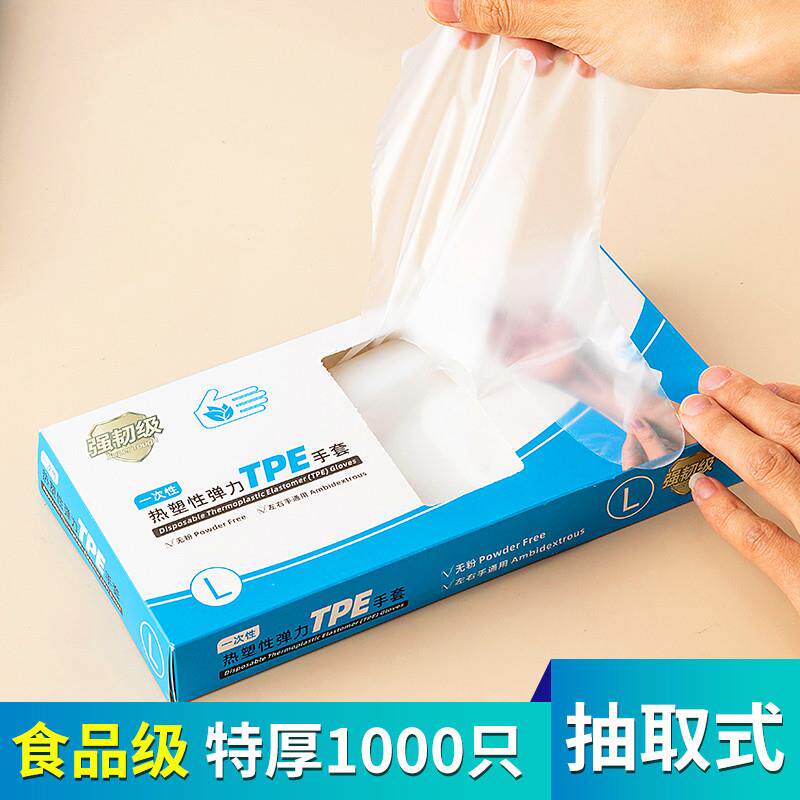 2000只抽取式一次性PE手套加厚食品级餐饮塑料薄膜家用透明盒装