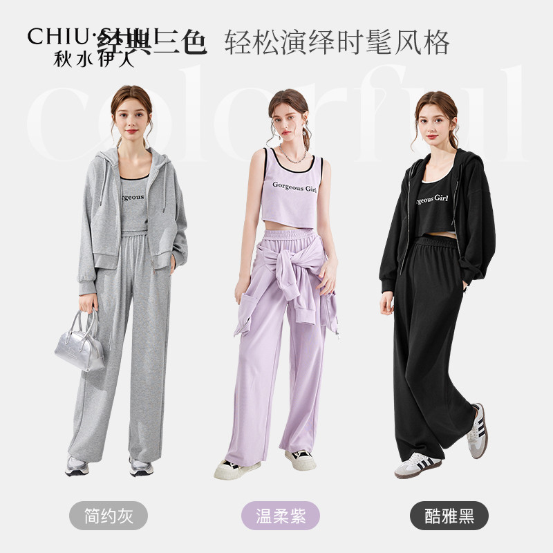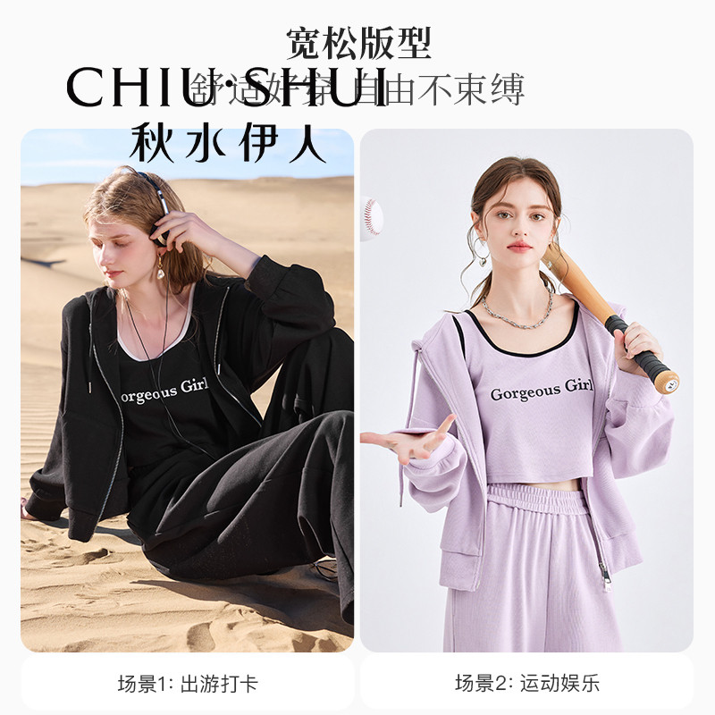 311线报网描述:连帽拉链卫衣 舒适内搭吊带 宽松直筒裤