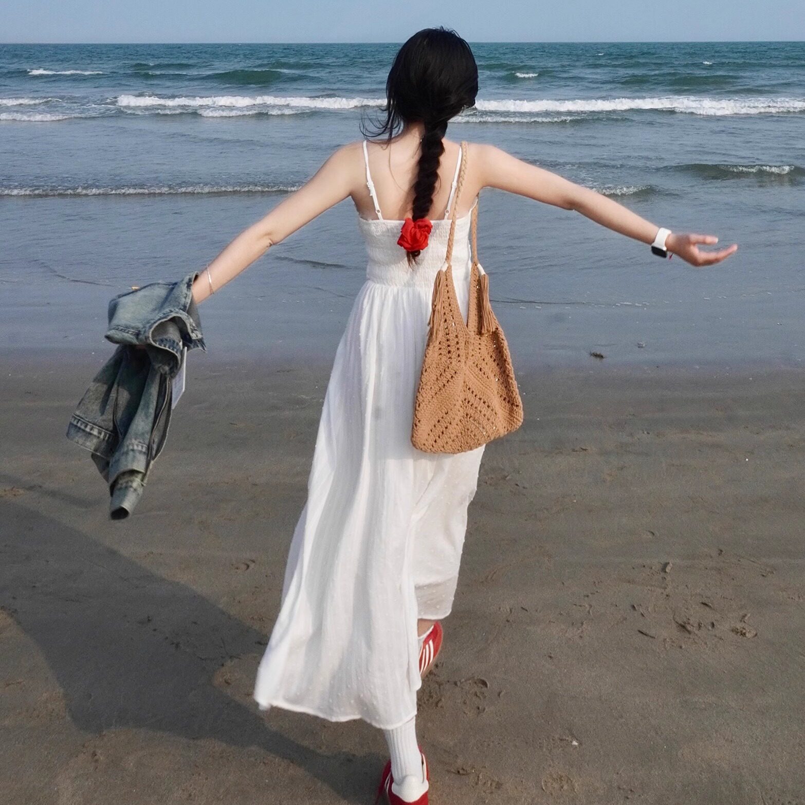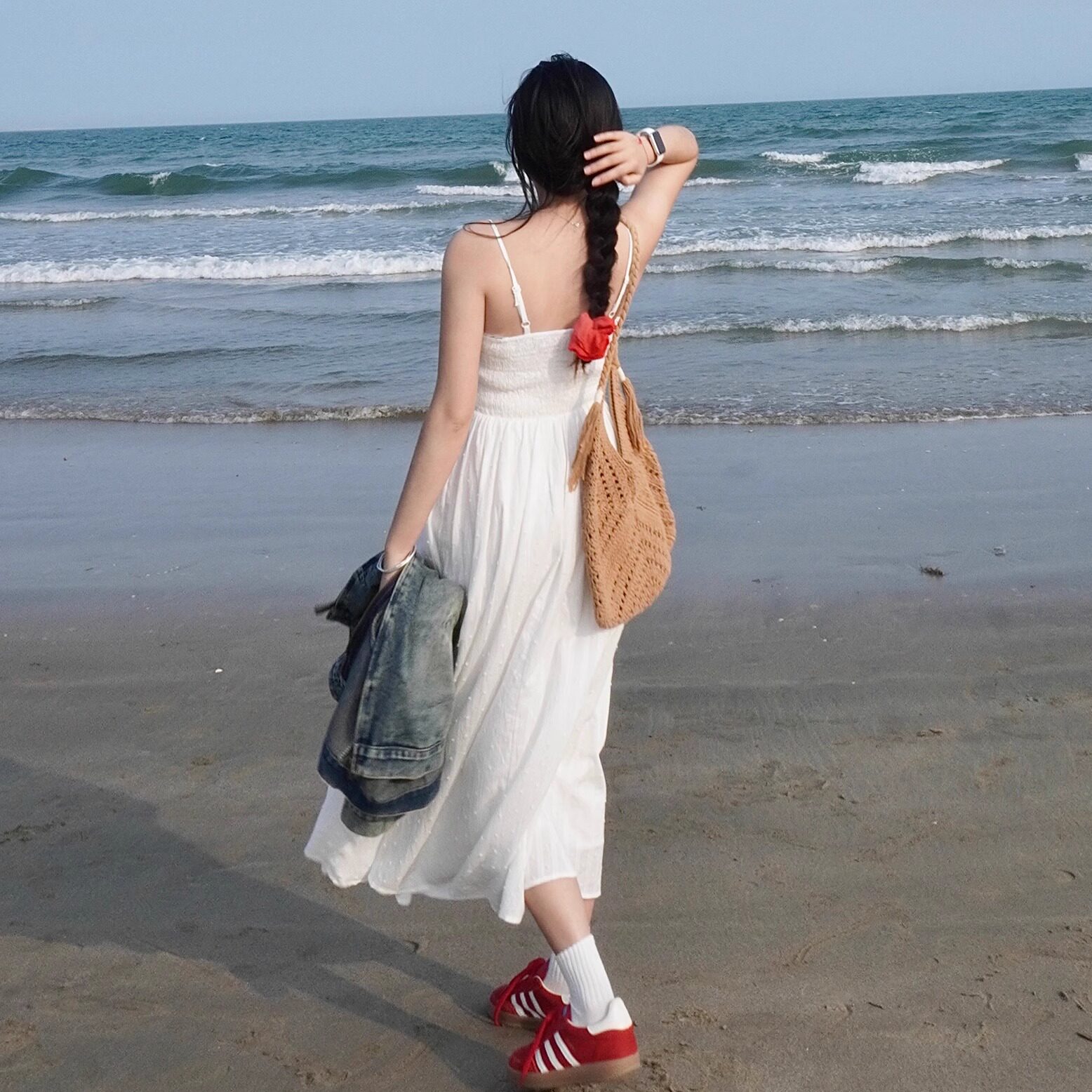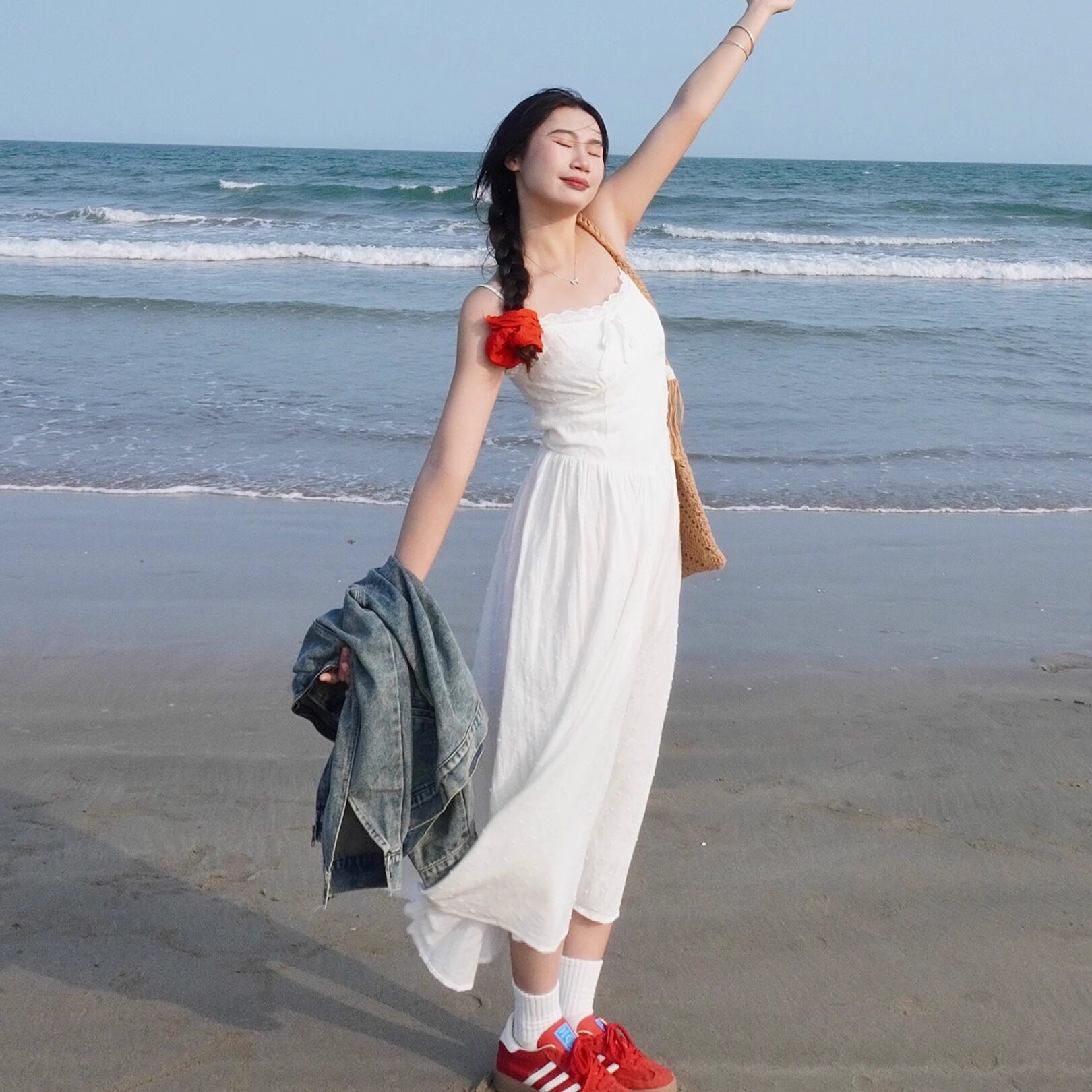 法式初恋白色吊带连衣裙气质收腰显瘦温柔风松紧腰夏季a字裙长裙