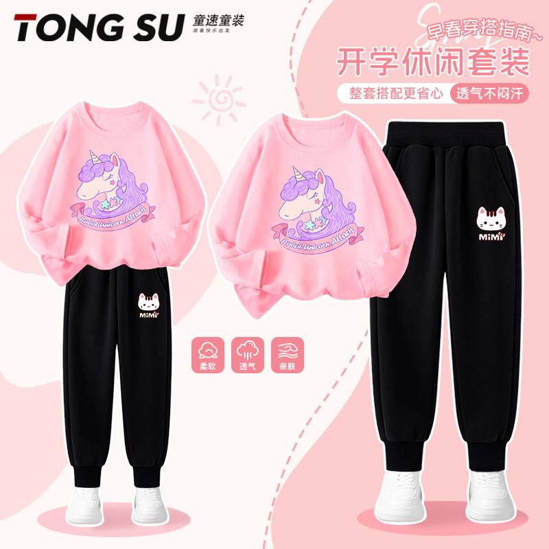 女童春装套装2026新款薄款女孩洋气长袖t恤运动裤两件套儿童衣服