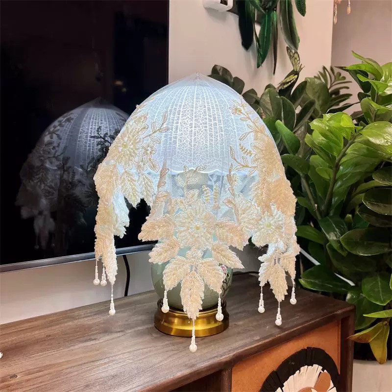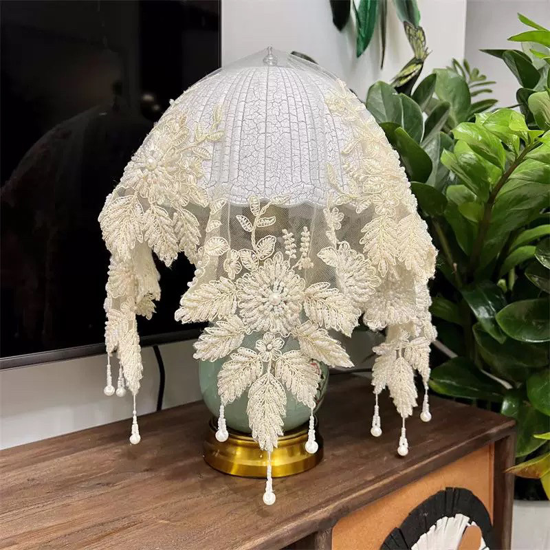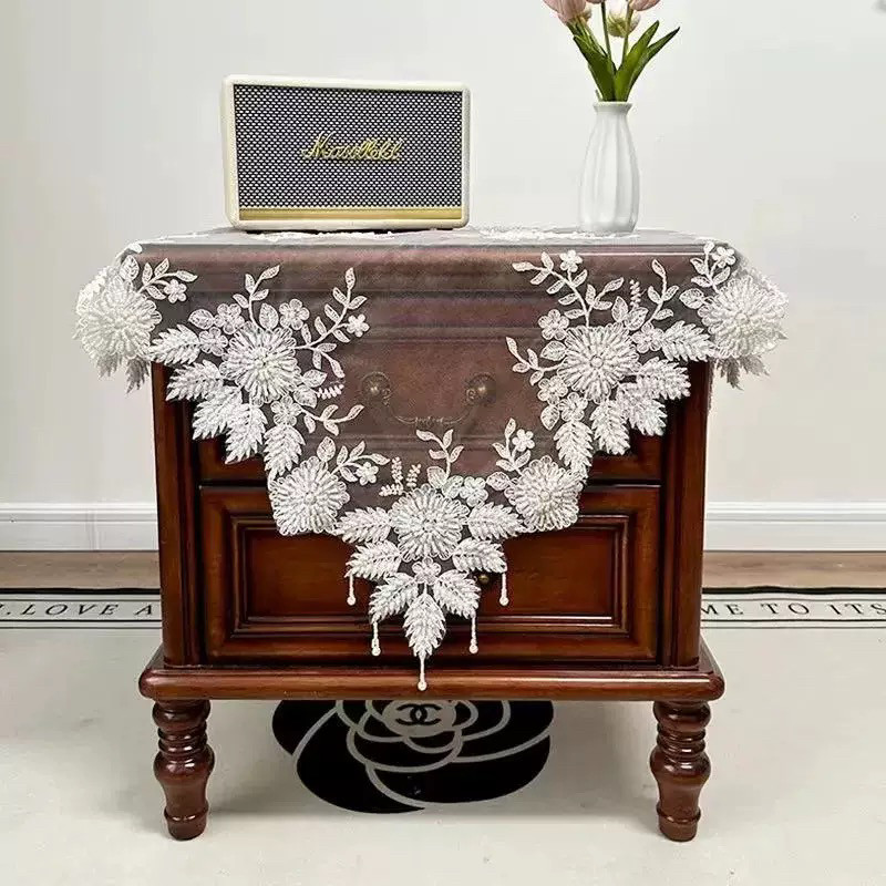 2025新款轻奢刺绣手工钉珠床头柜盖巾台灯防尘盖布圆桌桌布蕾丝布