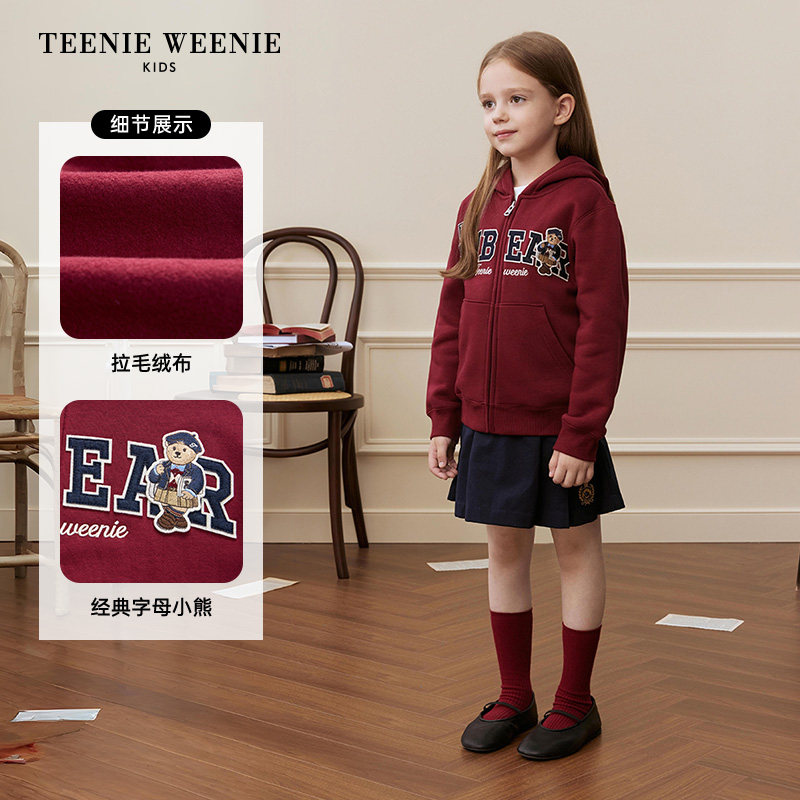 TeenieWeenie Kids小熊童装时尚舒适男女童连帽拉链加绒卫衣外套