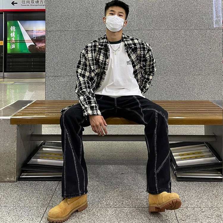千鸟格小香风外套男款黑白格子痞帅高级感男装春秋季美式复古夹克