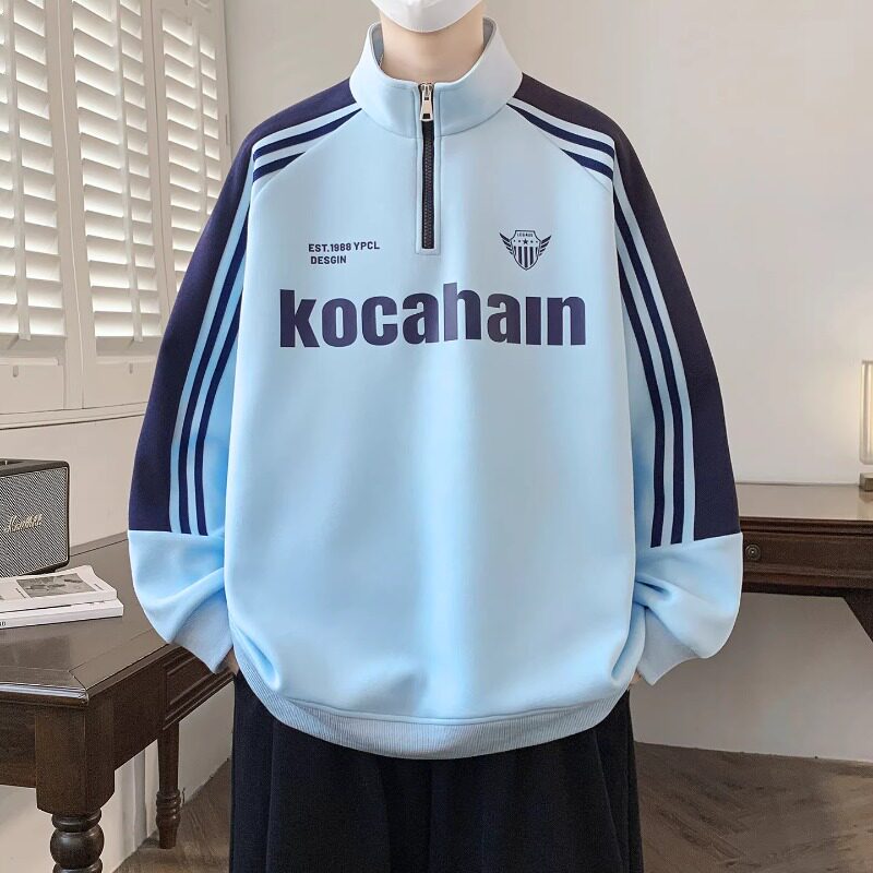 春秋季半拉链立领卫衣男孩高中初中学生青少年大童潮流打底衫上衣