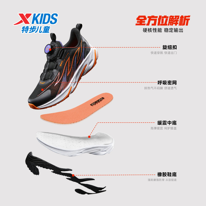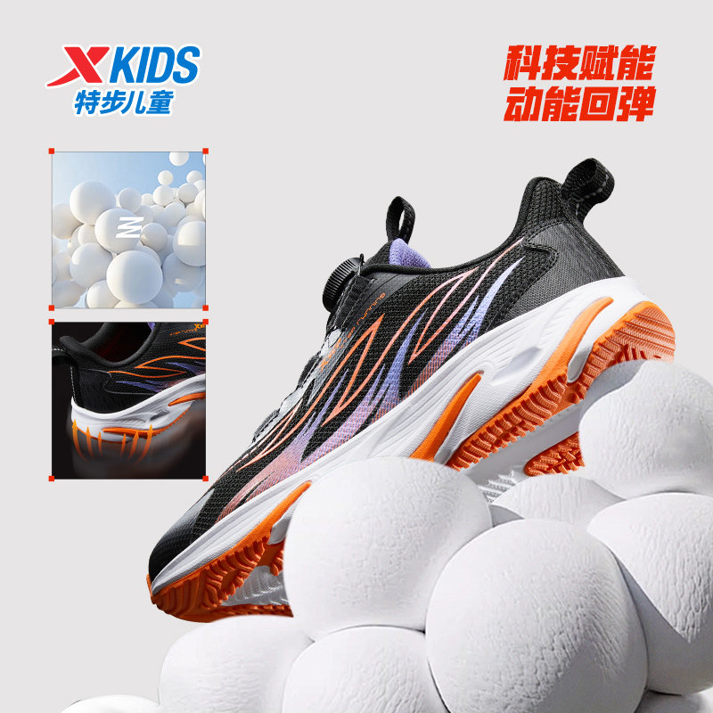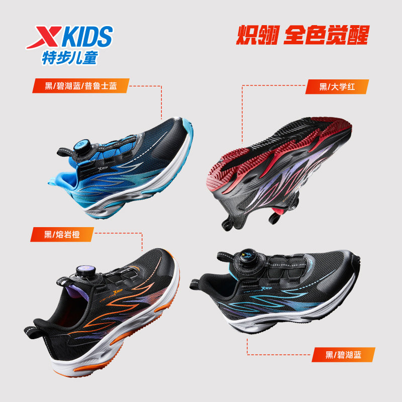 特步童鞋秋季新款儿童运动鞋男童轻弹缓震耐磨中大童旋转纽扣跑鞋