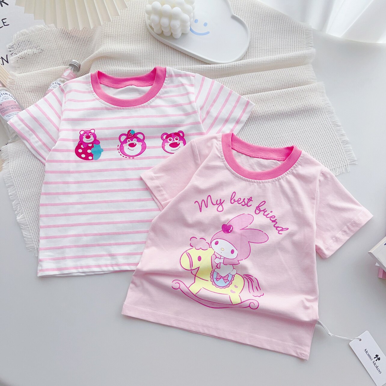 童装新品女童男童A类纯棉透气T恤短袖百搭幼儿园上衣可爱卡通