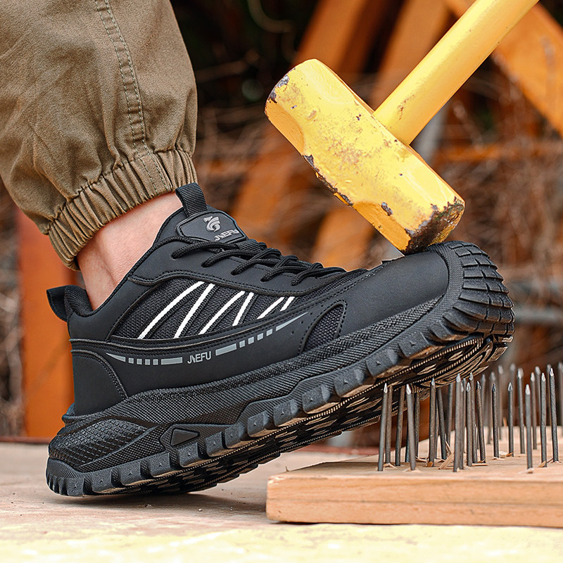 高端四季劳保鞋新款防砸防刺穿塑头钢丝网布防滑耐磨男工作安全鞋