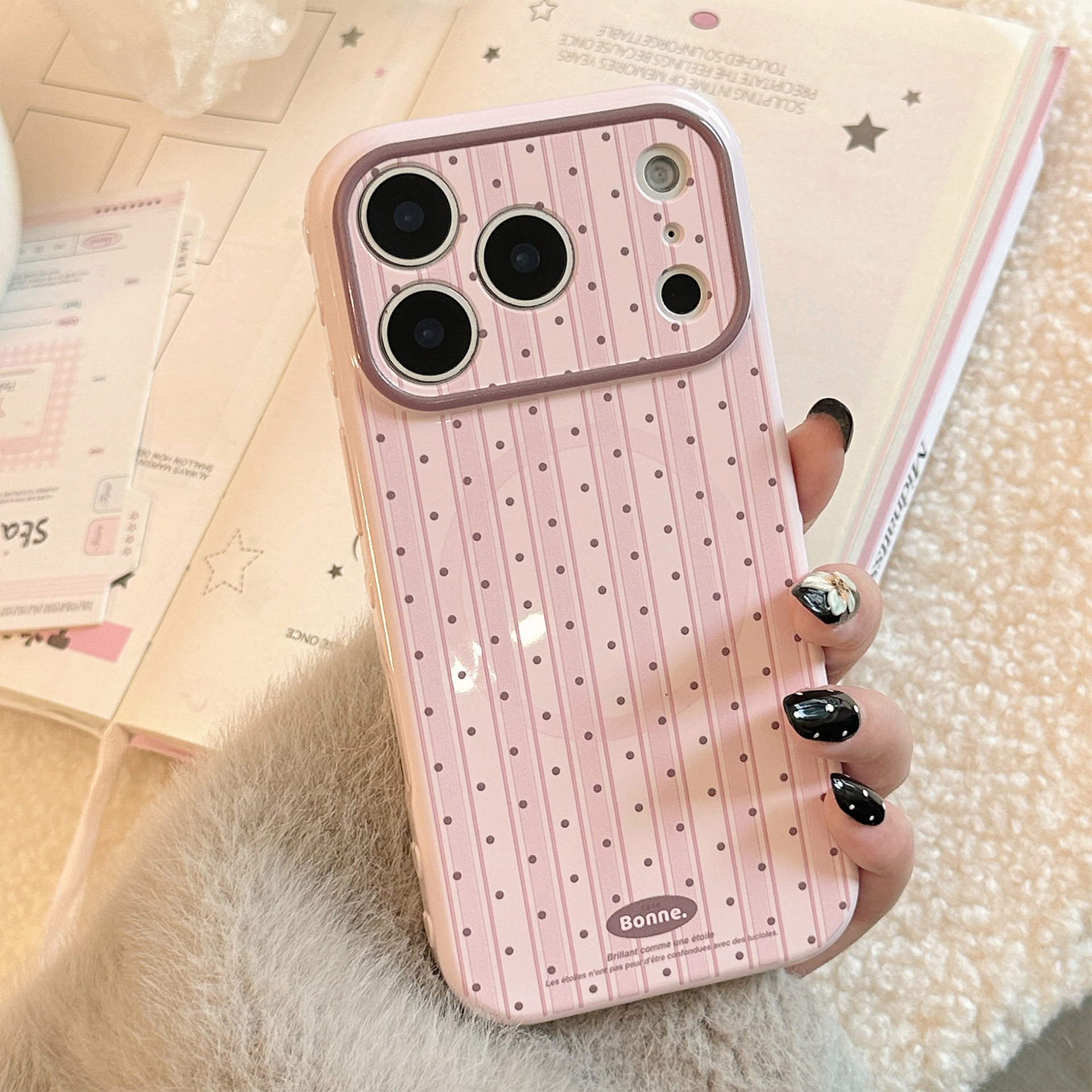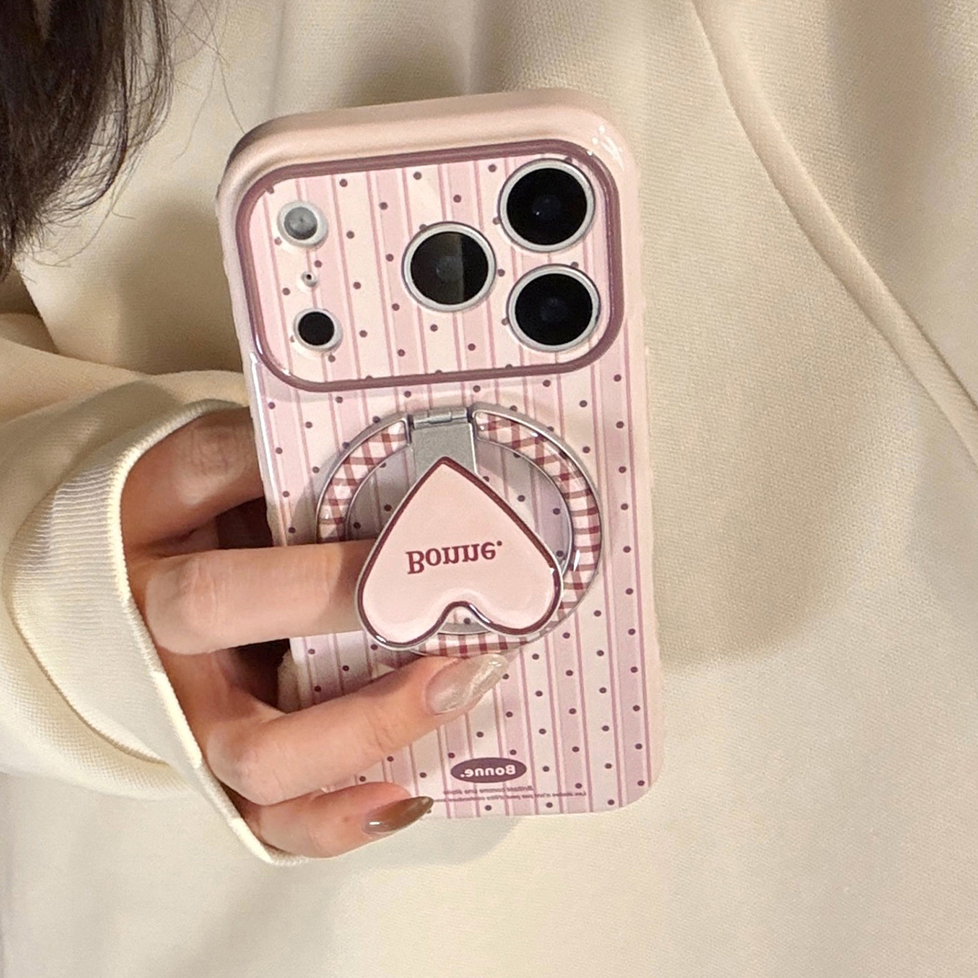珍珠手链爱心磁吸圈【可拆卸支架】适用苹果17女款手机壳带支架16promax新款15pro高级感2026iphone13女生14