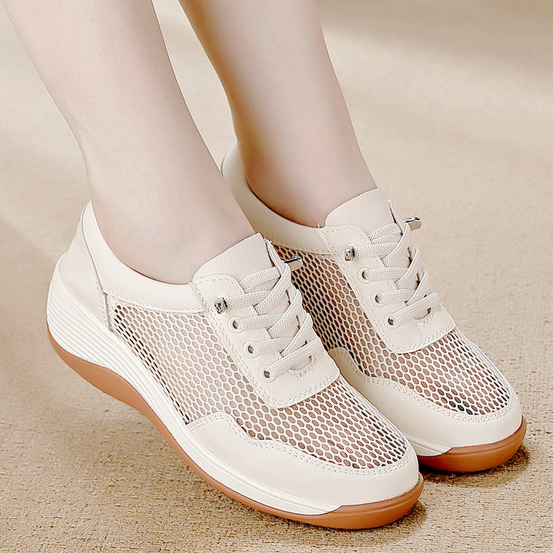 2026年新款跑步女鞋薄款单鞋女士坡跟休闲网纱网鞋网面透气小白鞋