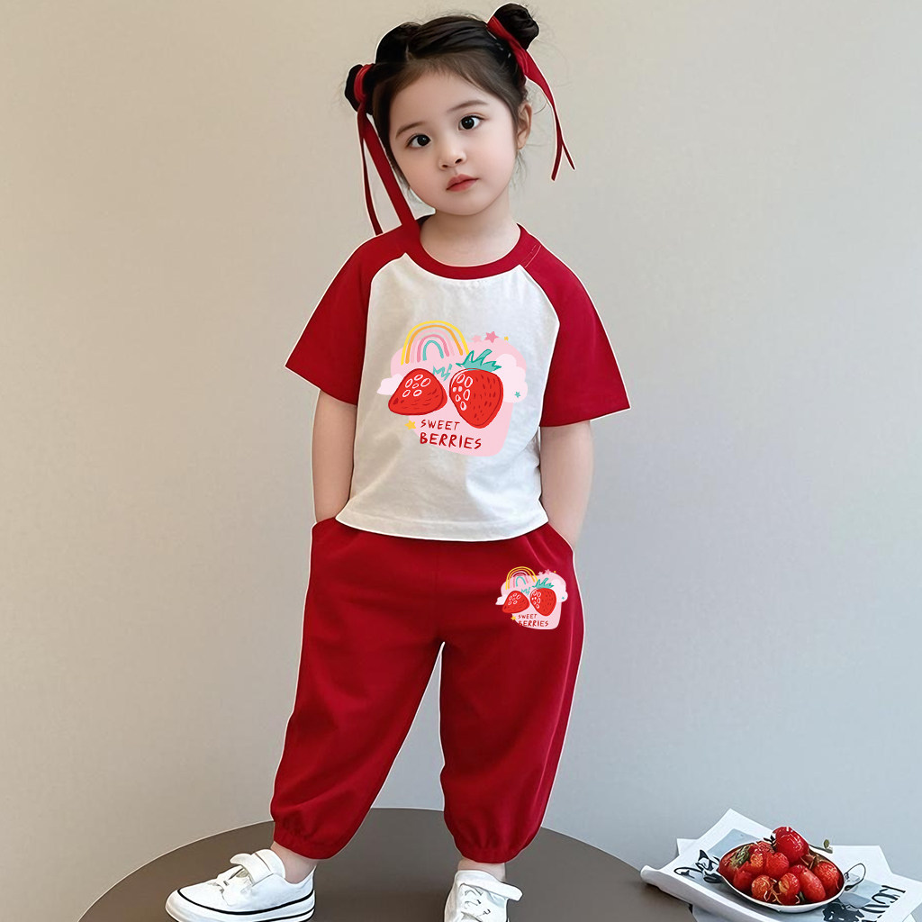 儿童纯棉夏装套装女童2026新款女宝宝外出炸街短袖休闲运动两件套