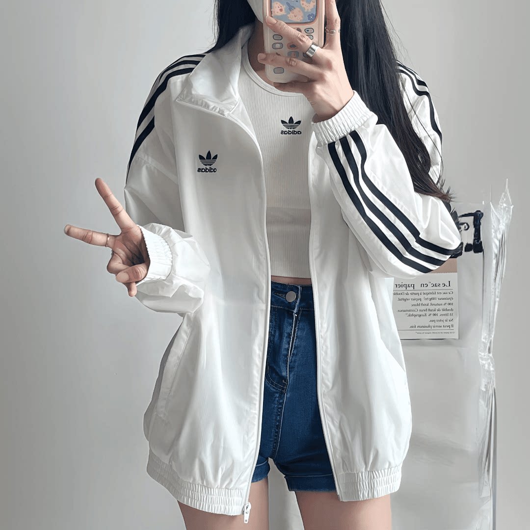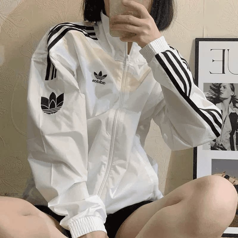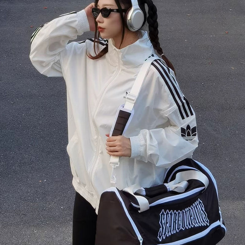 阿迪达斯三叶草外套女春季新款梭织薄款防风衣复古美式立领夹克女