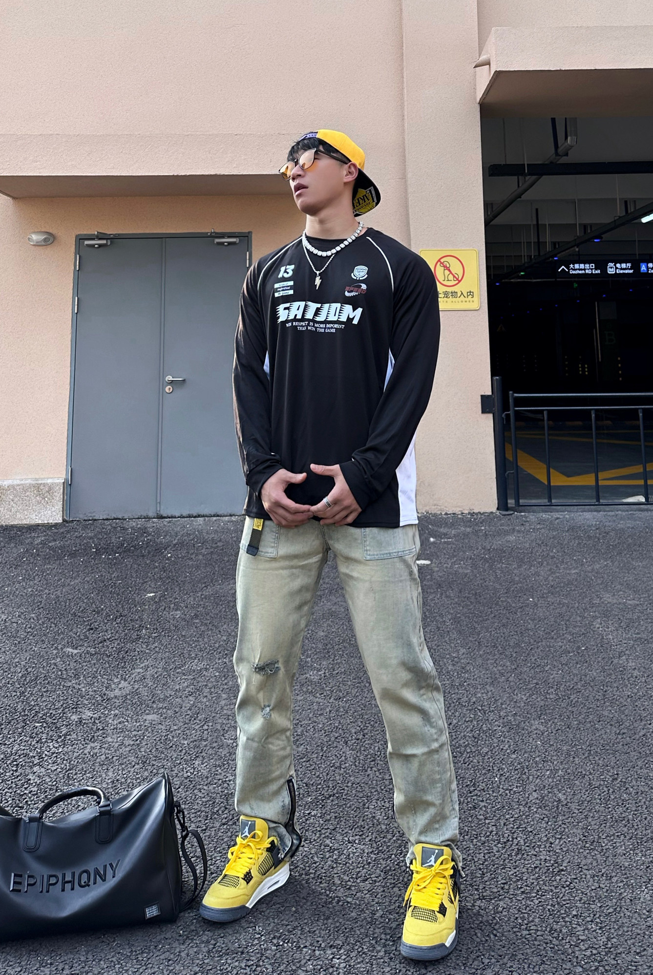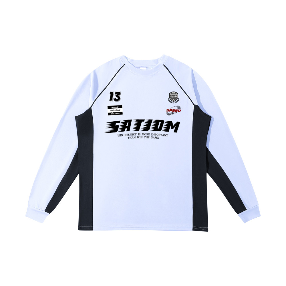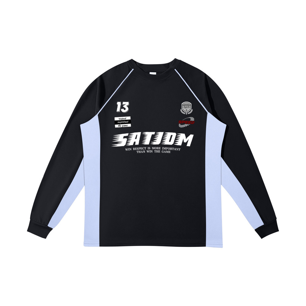 Satjdm美式穿搭拼接撞色插肩袖长袖训练服T恤健身跑步体育生2024