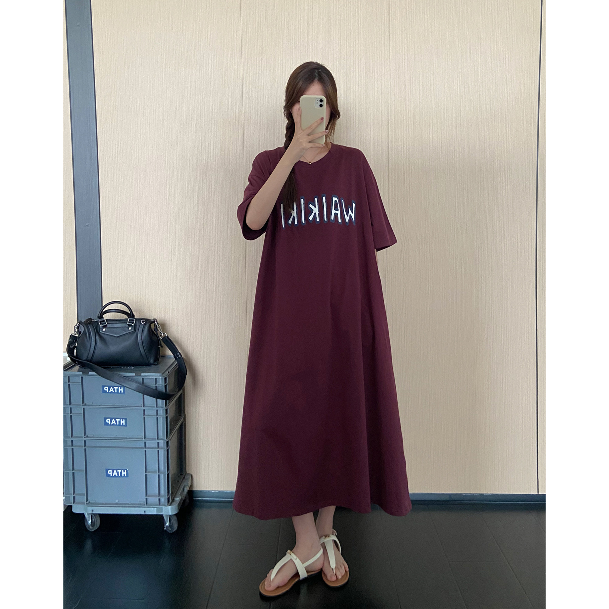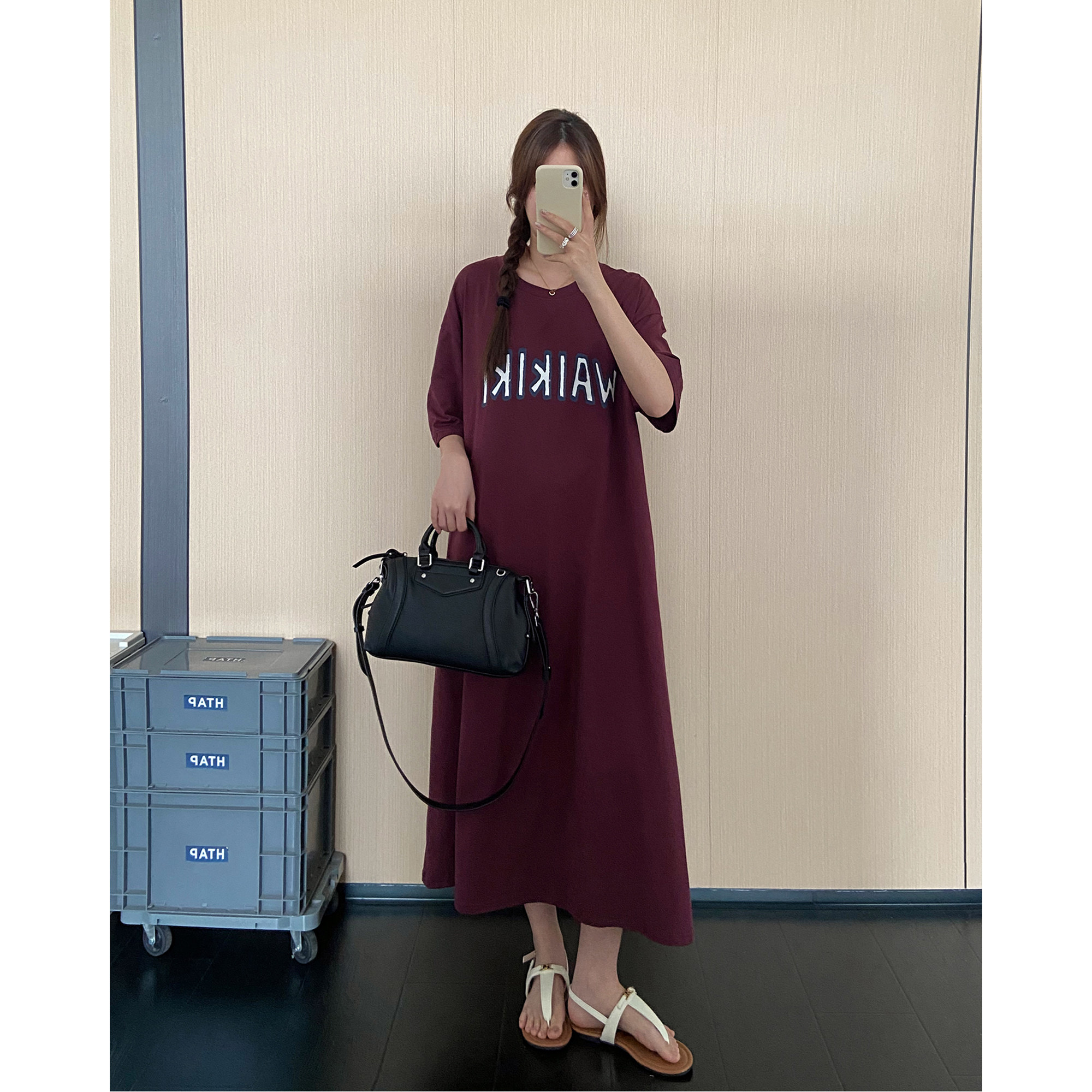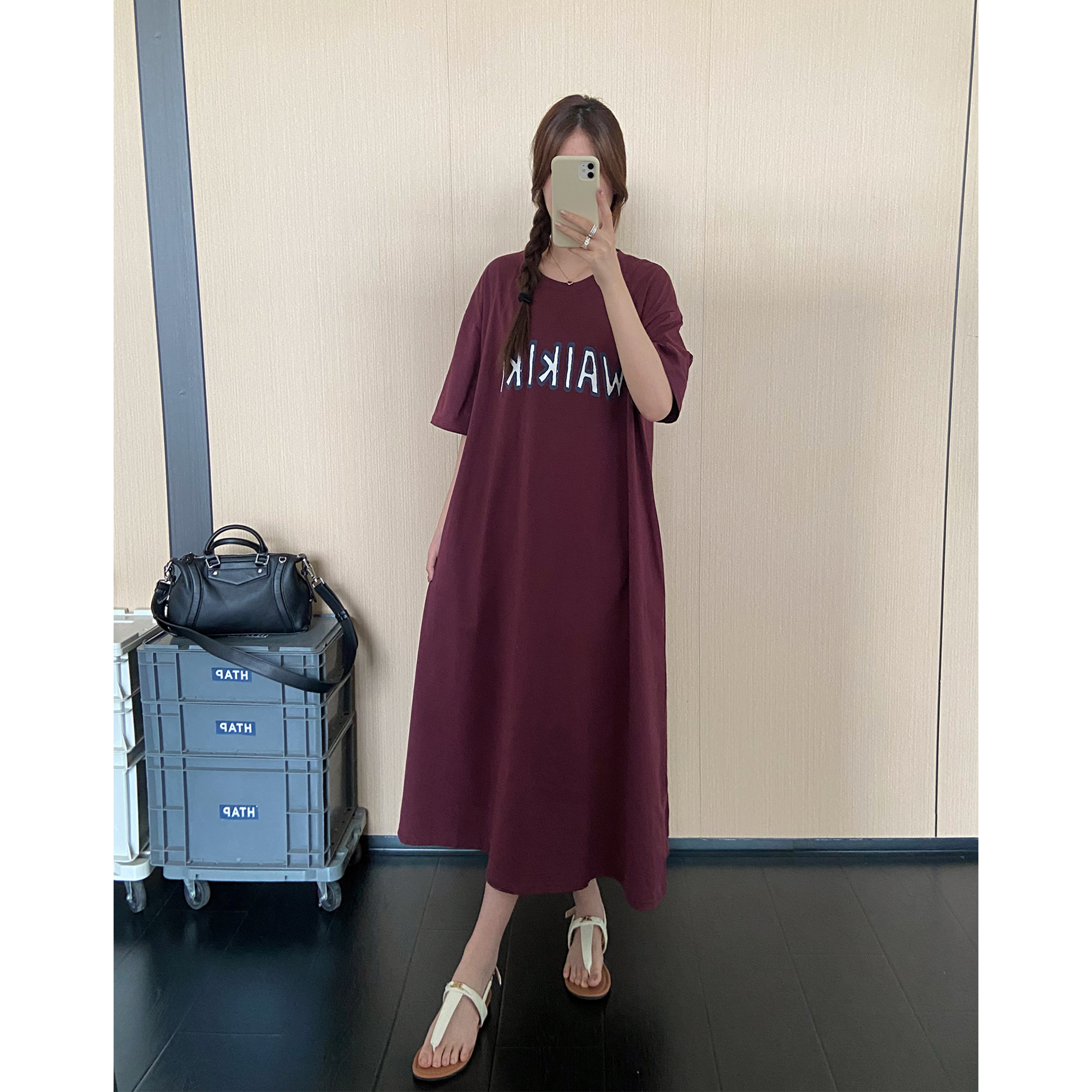 超长款到脚踝短袖T恤裙女夏季新款字母印花宽松显瘦直筒连衣裙子
