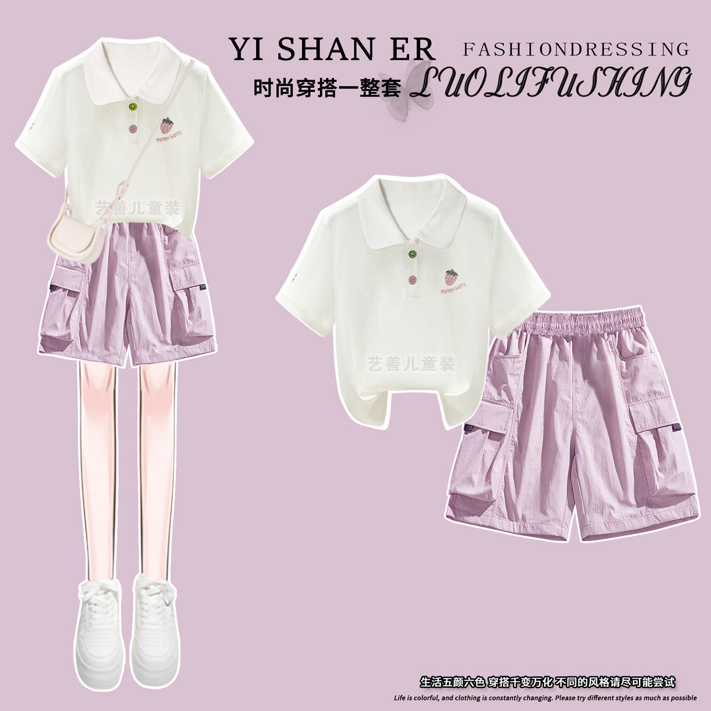 女童夏季工装裤套装2026新款中大儿童短袖夏装薄款女孩初中生短裤