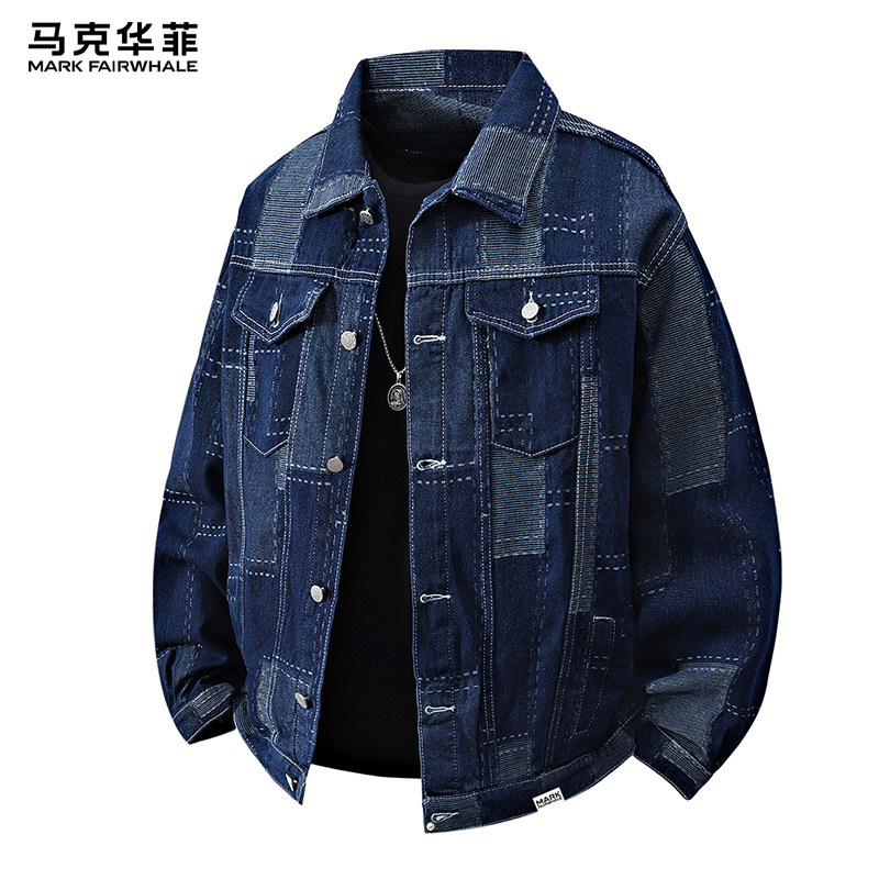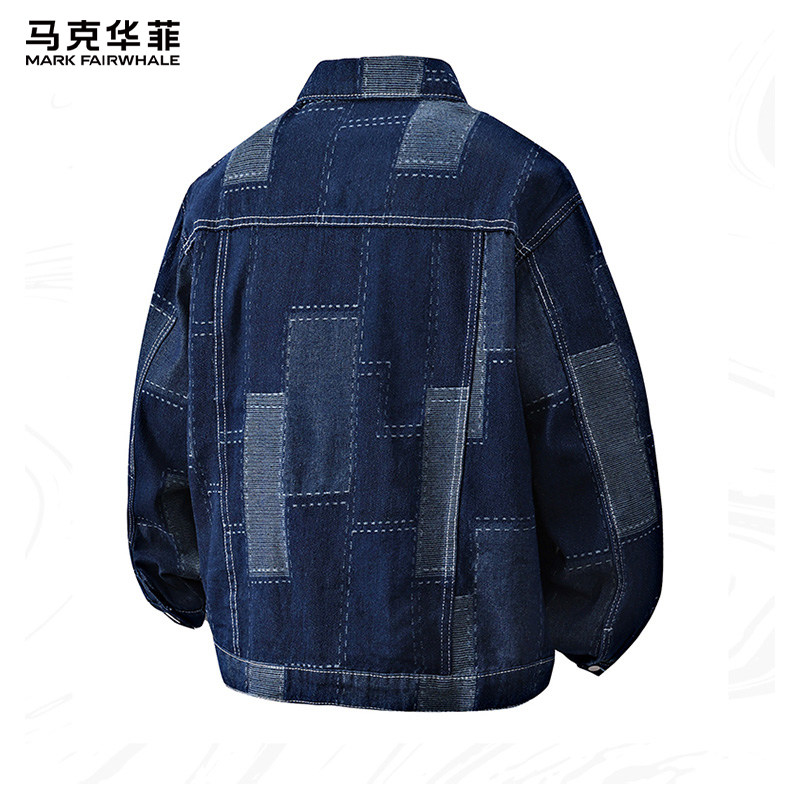 马克华菲拼接牛仔外套男款2026春季新款工装潮流翻领宽松休闲夹克