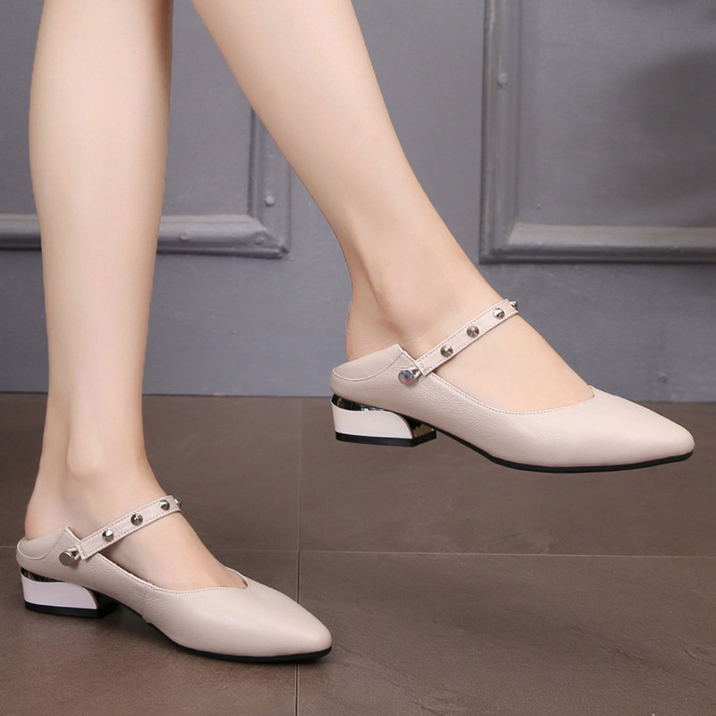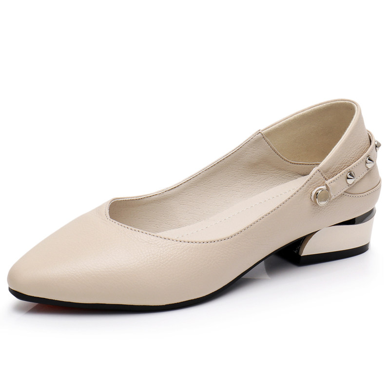 小码女鞋313233软皮浅口真皮软底尖头平底单鞋夏季百搭中低跟凉鞋